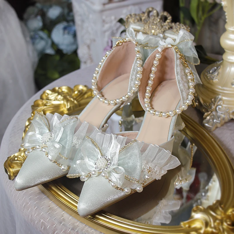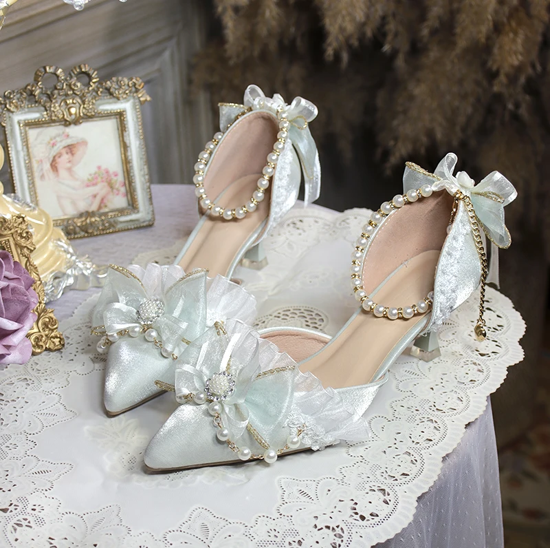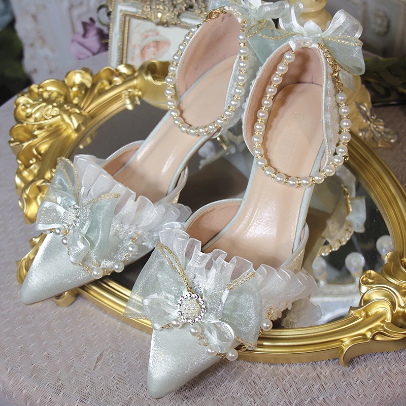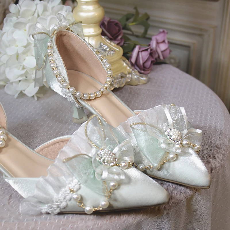 LIZAKOSHT - One Night Story Original Lolita Shoes Slim Heels Chinese Style Lolita Pointed Sandals High Heels Handmade Flower Wedding Shoes