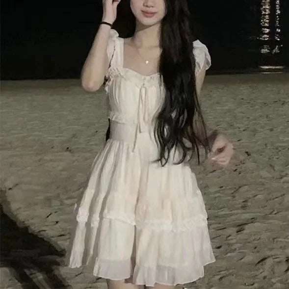 LIZAKOSHT - Original Fabric+Lining Zipper Retro Mini Dress High-End Feeling Small Butterfly Knot Small Flying Sleeve Women's Dress