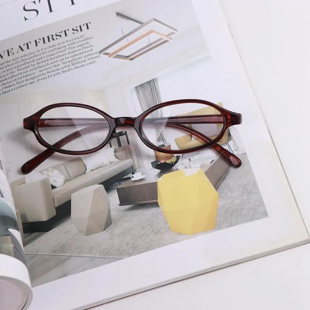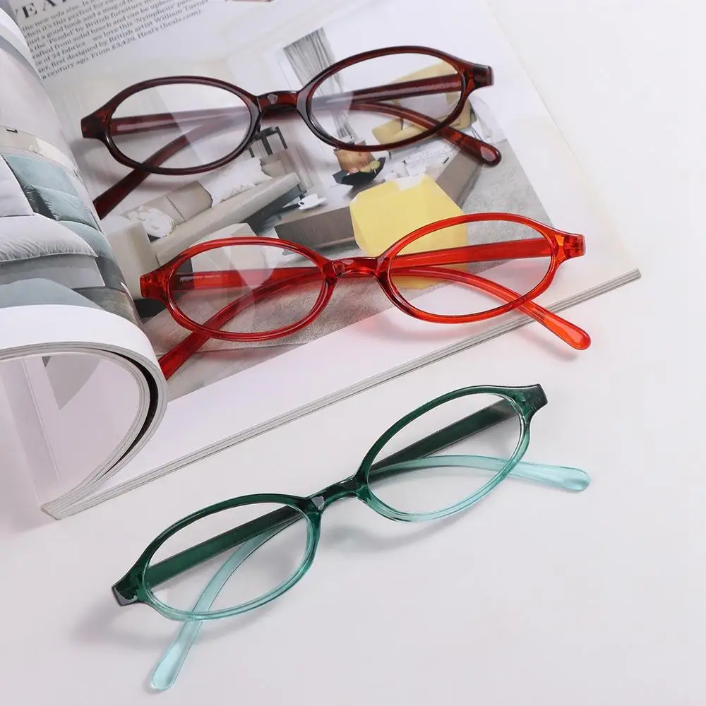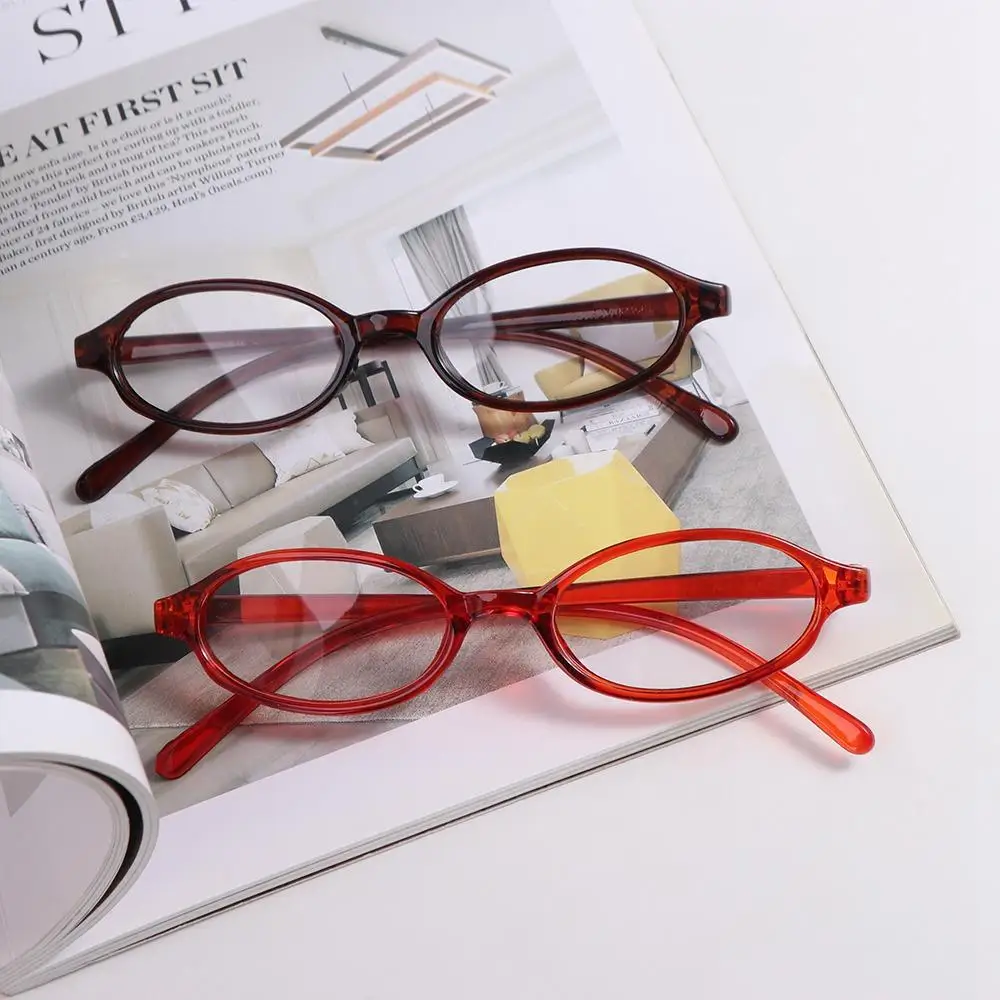 LIZAKOSHT - Oval Small Oval Frame Glasses Shiny PC Round Frame Flat Spectacle Glasses Korean Style Y2k Optical Myopia Glasses Daily