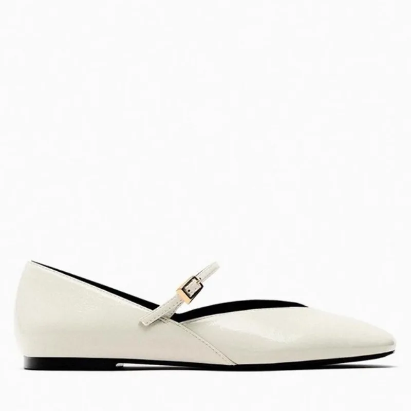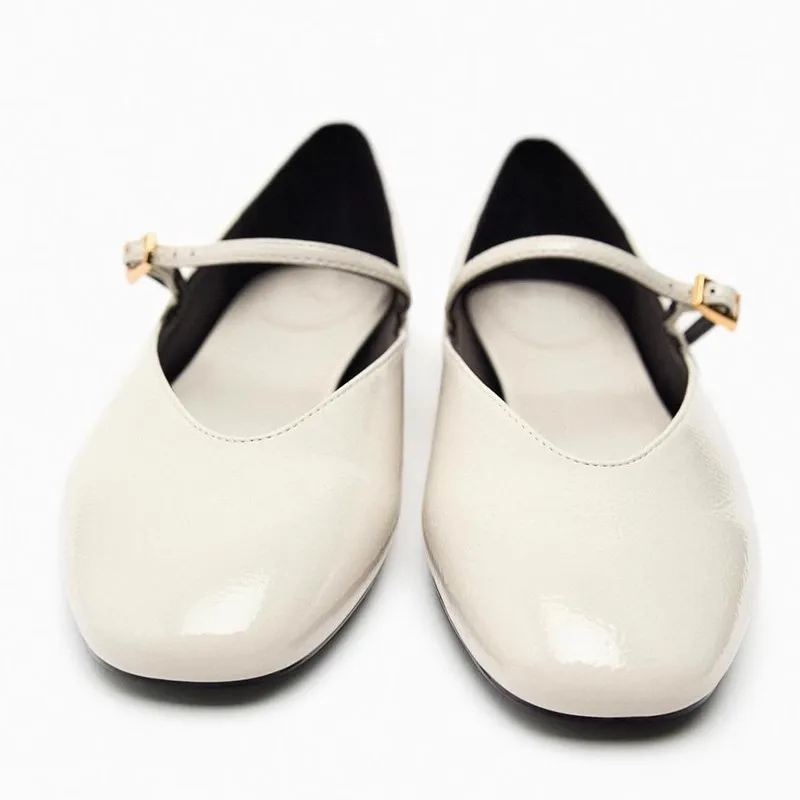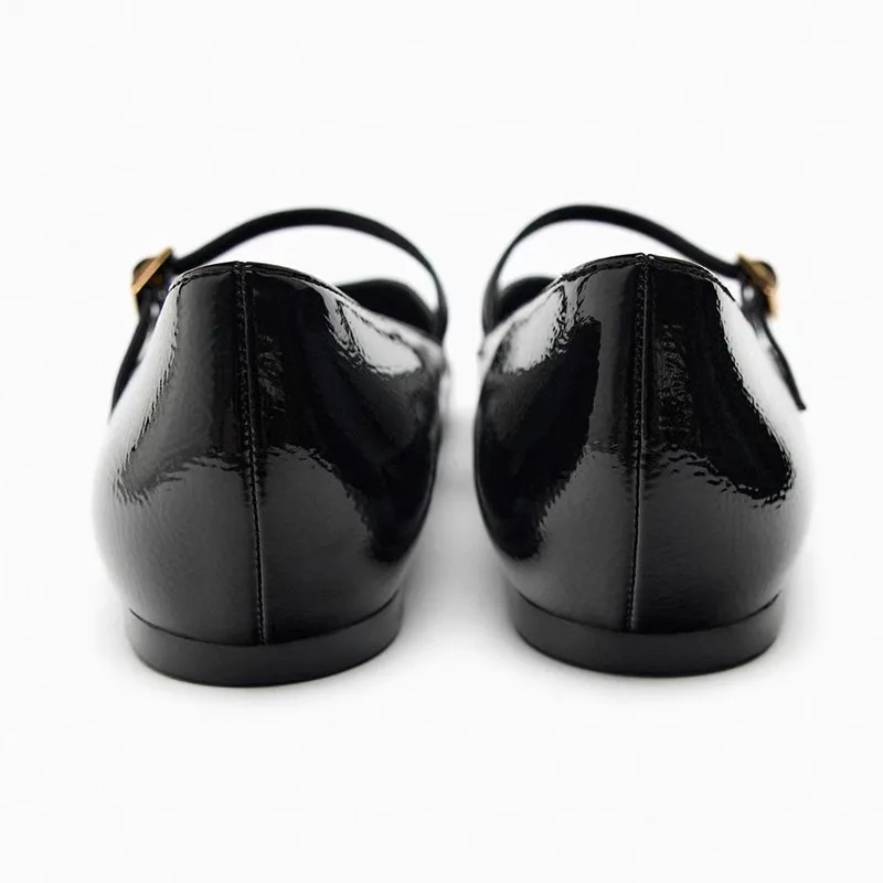 LIZAKOSHT - Patent Leather Women Mary Jane Shoes Brand Design Summer Black Beige Footwear Shallow Buckle Strap Ladies Ballet Flats
