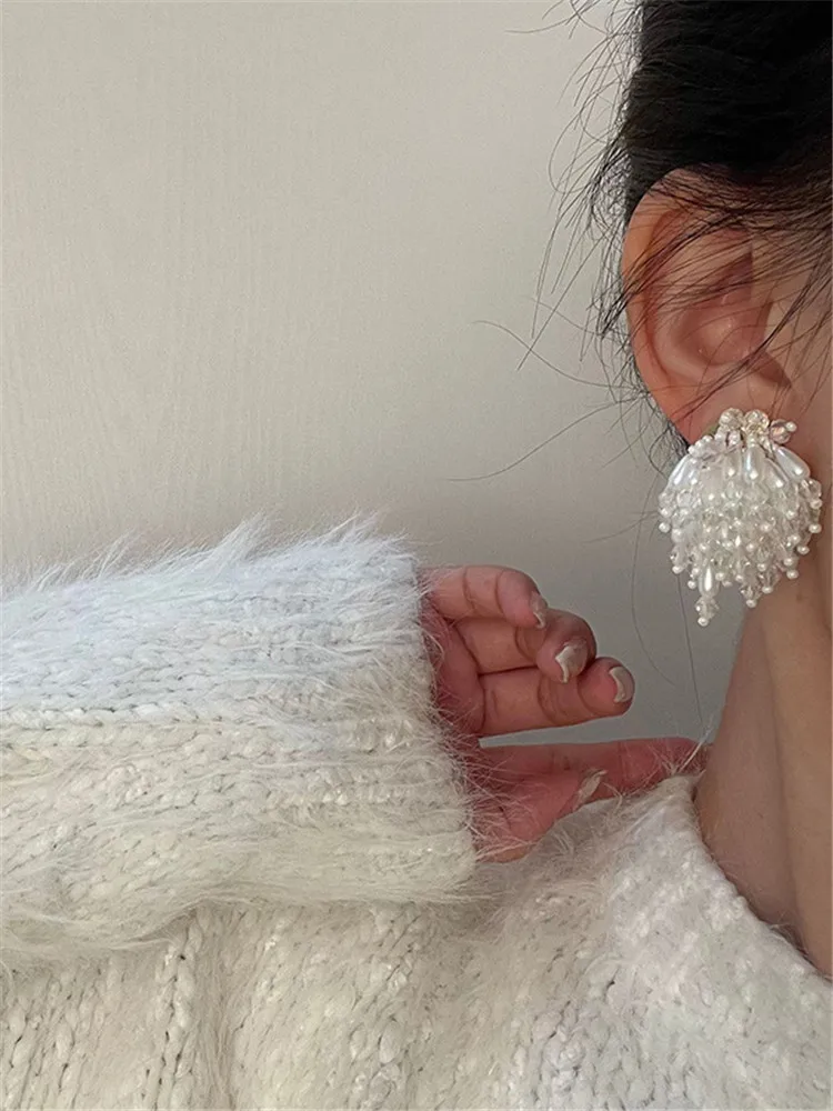 Lizakosht Pearl Crystal Fringed Flowers Earring South Korea's Temperament Fashionable Sweet Elegant Personality Stud Earrings Ms Jewelry