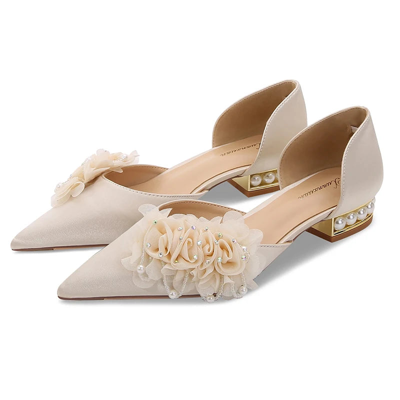 LIZAKOSHT Pearl heeled women's shoes white wedding wedding shoes bride shoes low-heeled single-shoe fairy shoes custom large 33-43size