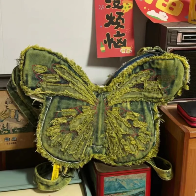 LIZAKOSHT - Personality Denim Butterfly Vintage Backpacks Fashion Harajuku Y2k Aesthetic Women Shoulder Bag Casual Trendy Handbags Crossbody
