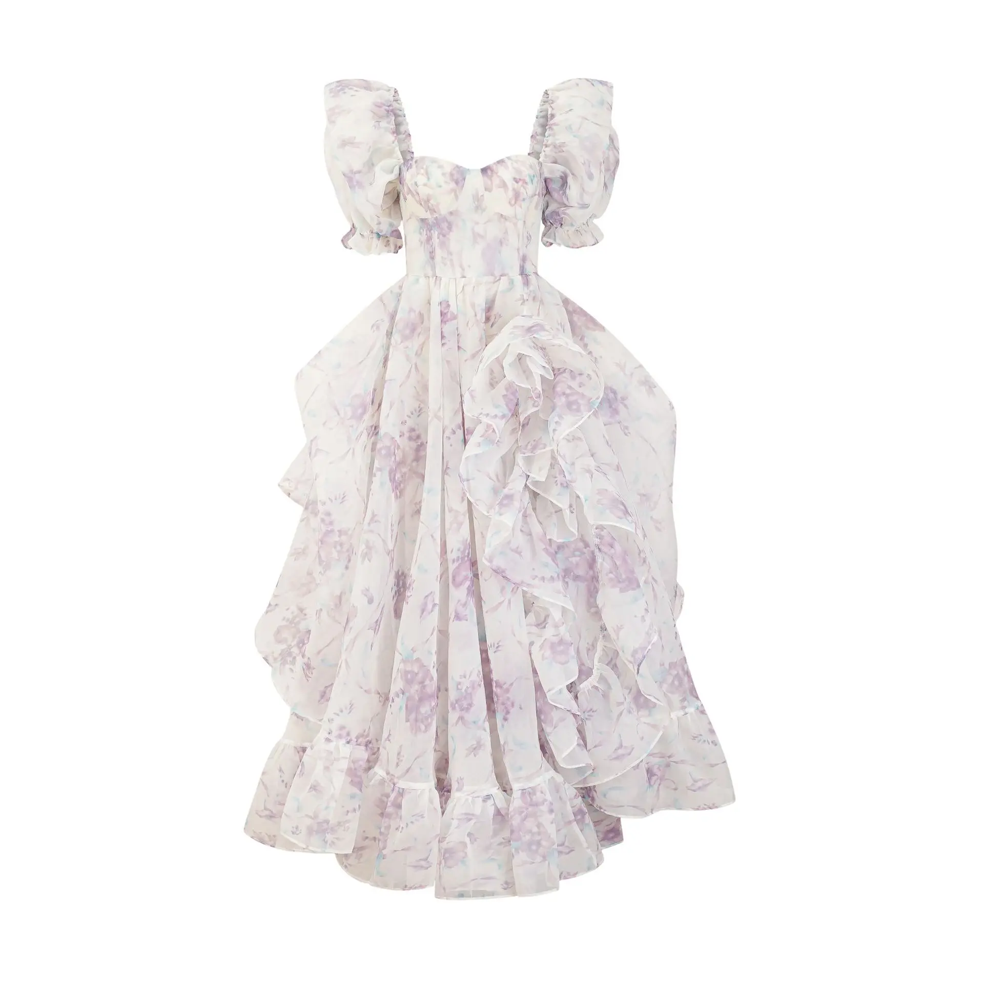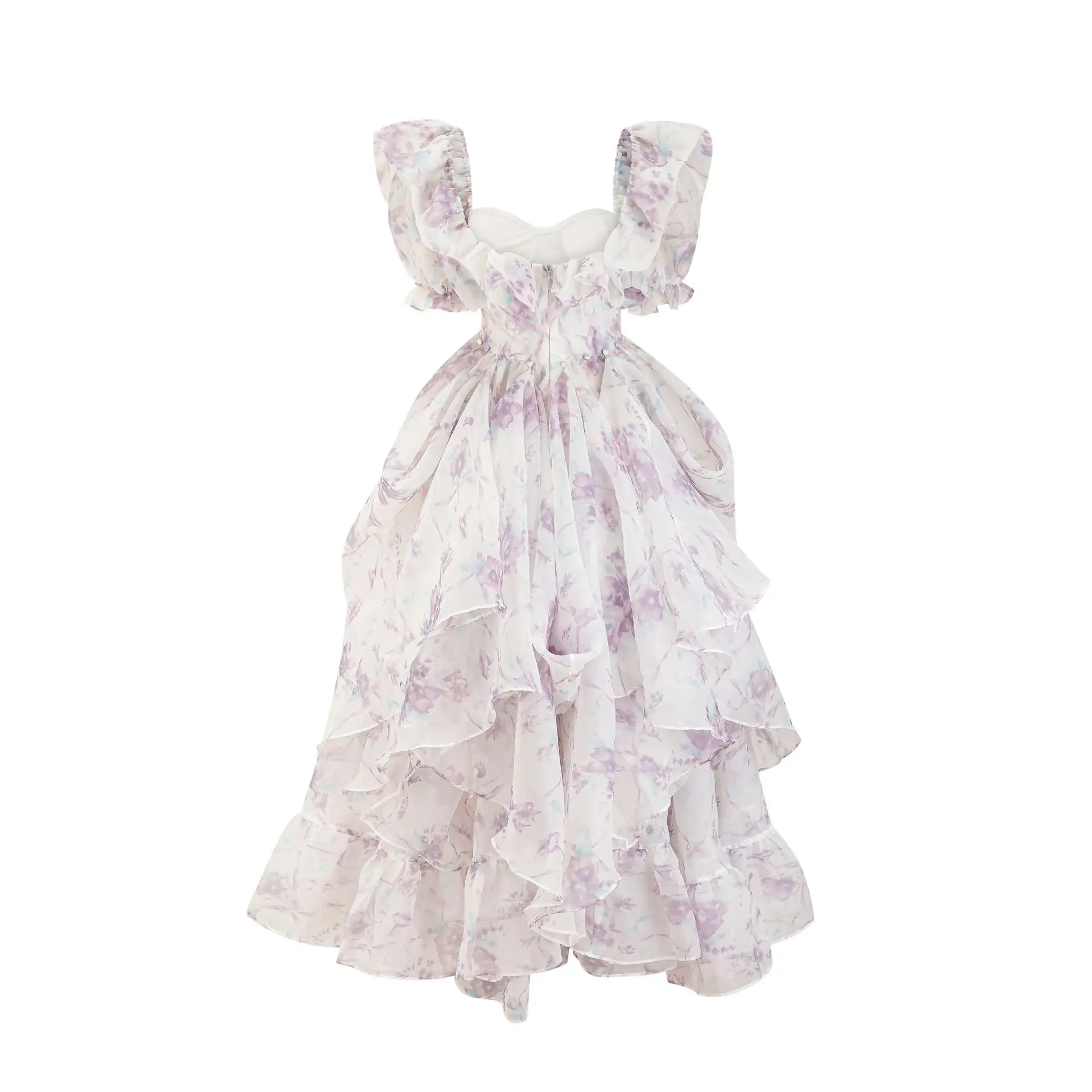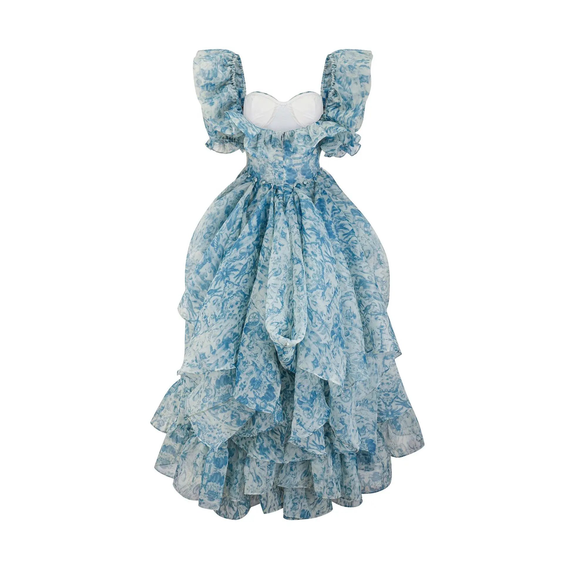 LIZAKOSHT - Pink Princess Dress Women Elegant Square Collar Puff Sleeve Mesh Party Dress High Waist Birthday Party Dress Fashion Prom Dress