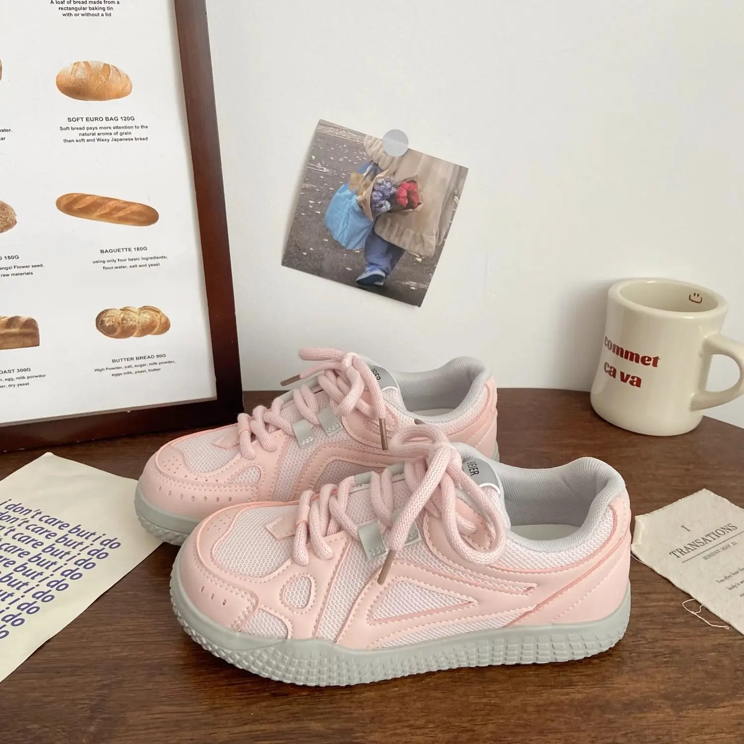 LIZAKOSHT - Pink Womens Sports Shoes Sweet Kawaii Korean Style Women Sneakers Pu Leather Low-top Casual Versatile Female Shoes