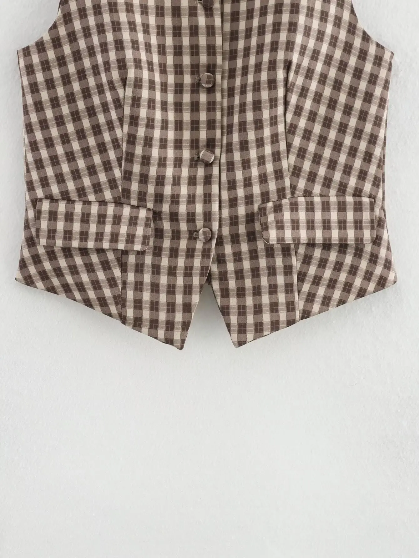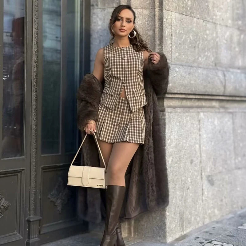 LIZAKOSHT - Plaid Skirt Suit Slim Suit Women's 2-piece O-neck Vest+trouser Skirt Summer Ladies' Elegant Suit New