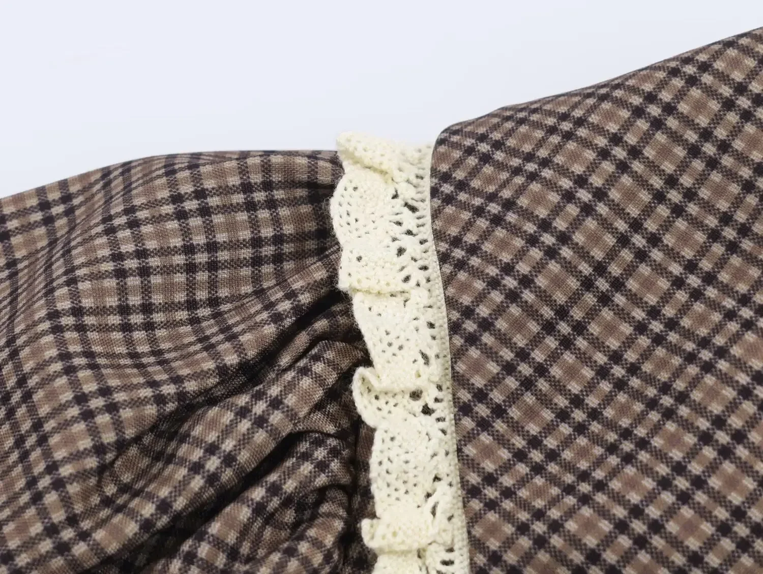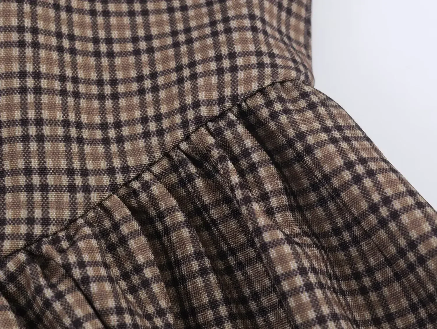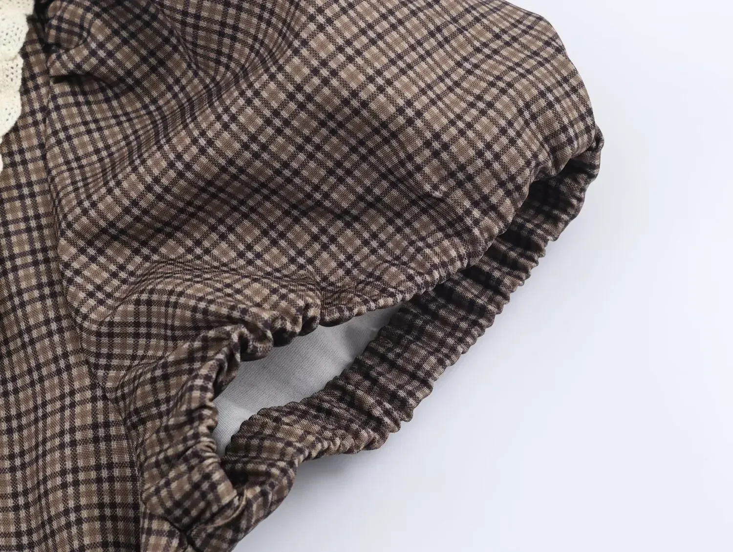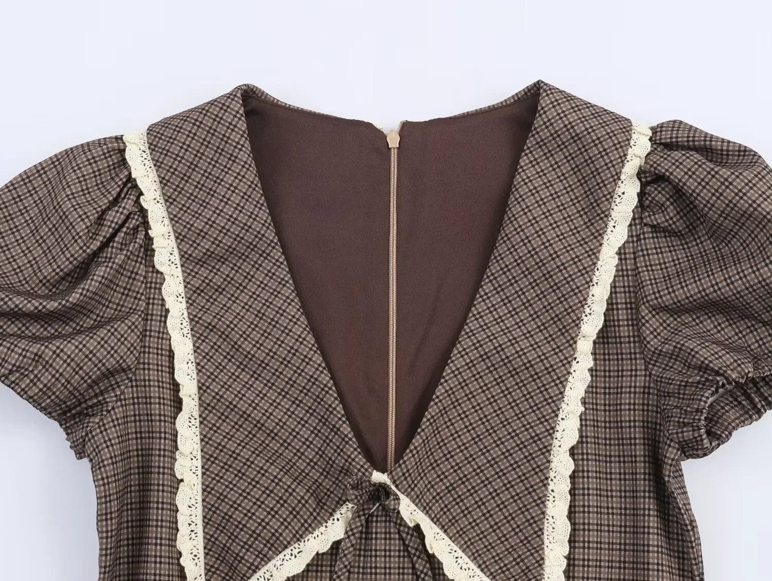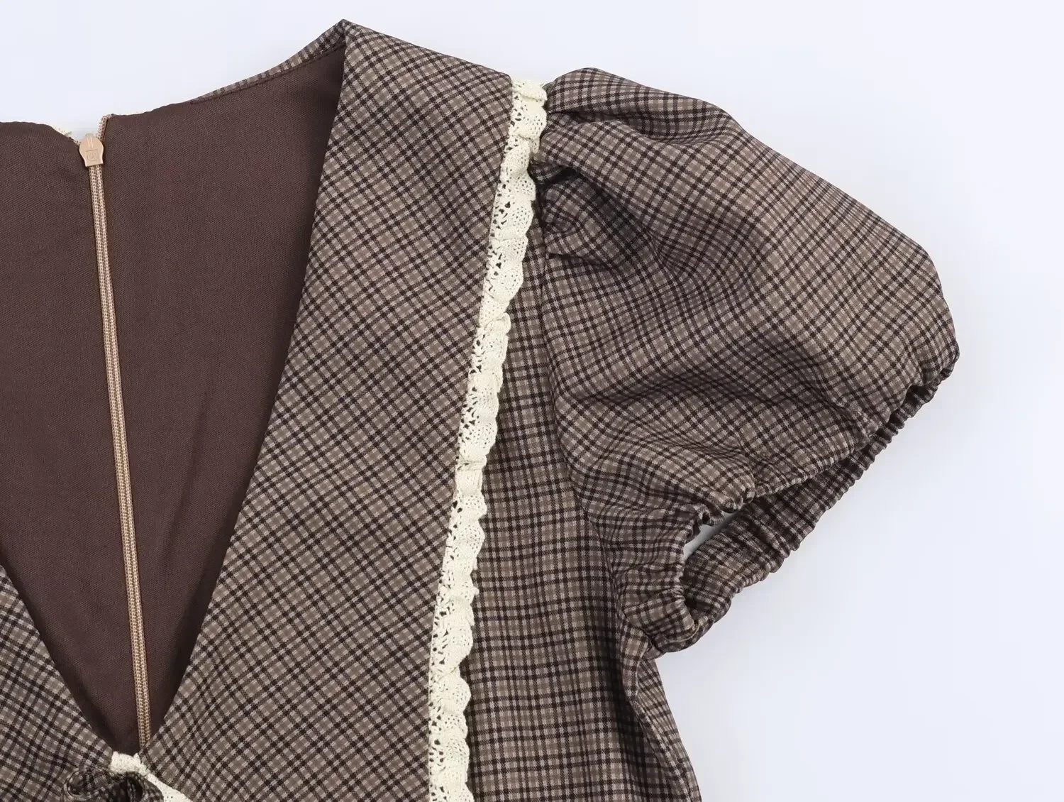 LIZAKOSHT  -  Plaid Waist Cinched Mini Dress Casual V-neck Short Sleeved Lace Up Slim Fit A-line Women Dresses Lady Daily Commute Vestido