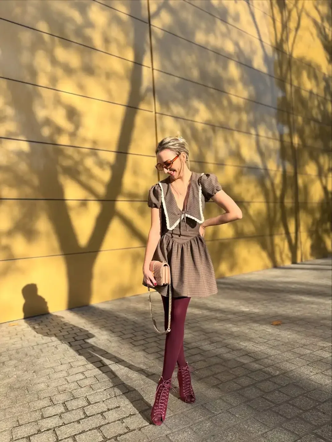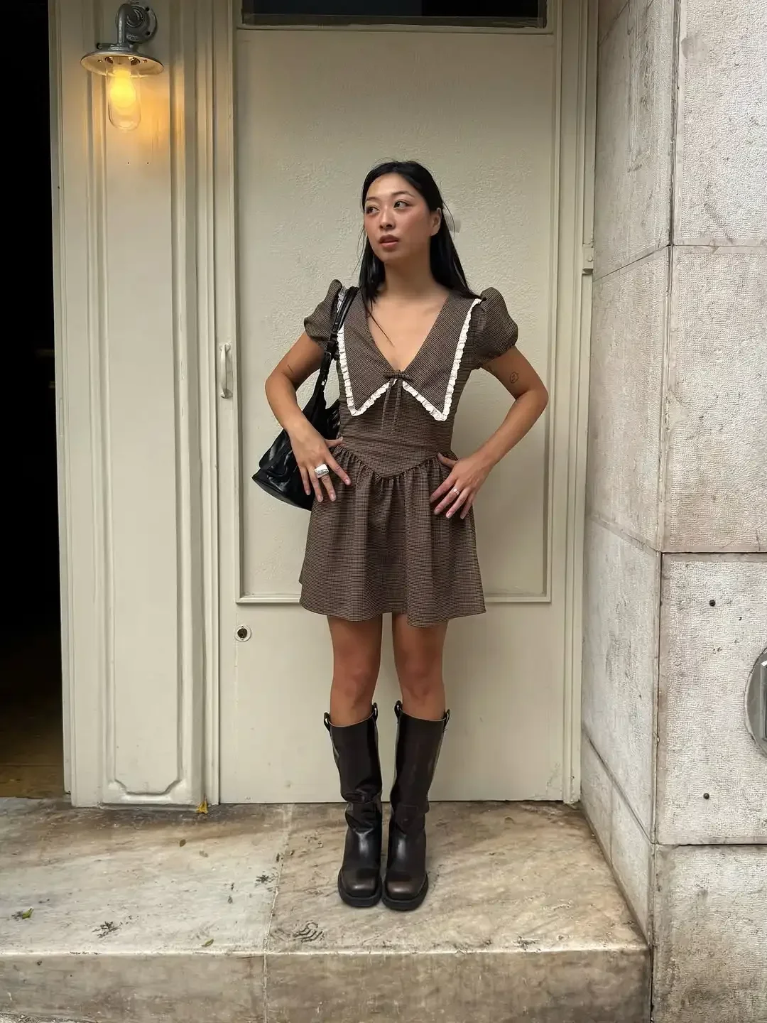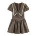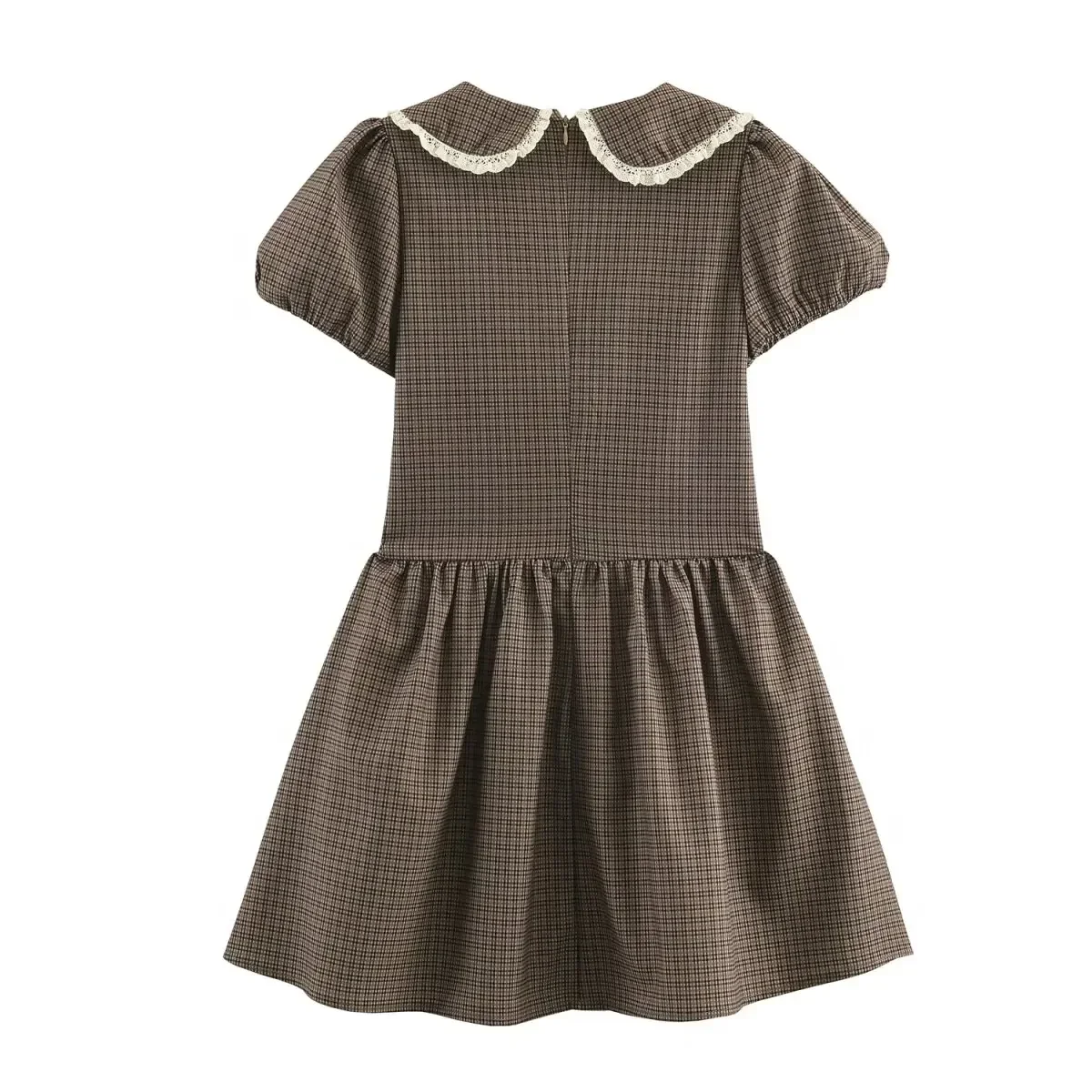 LIZAKOSHT - Plaid Waist Cinched Mini Dress Casual V-neck Short Sleeved Lace Up Slim Fit A-line Women Dresses Lady Daily Commute Vestido