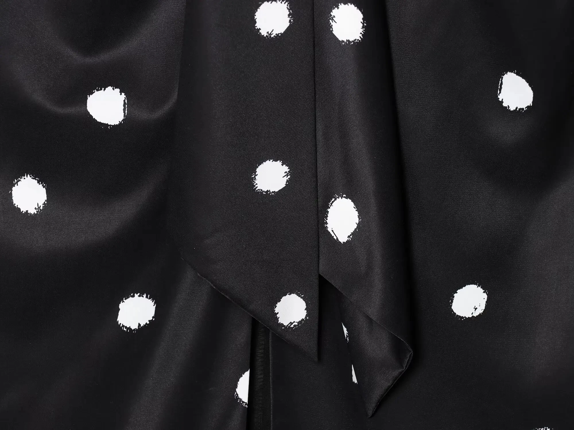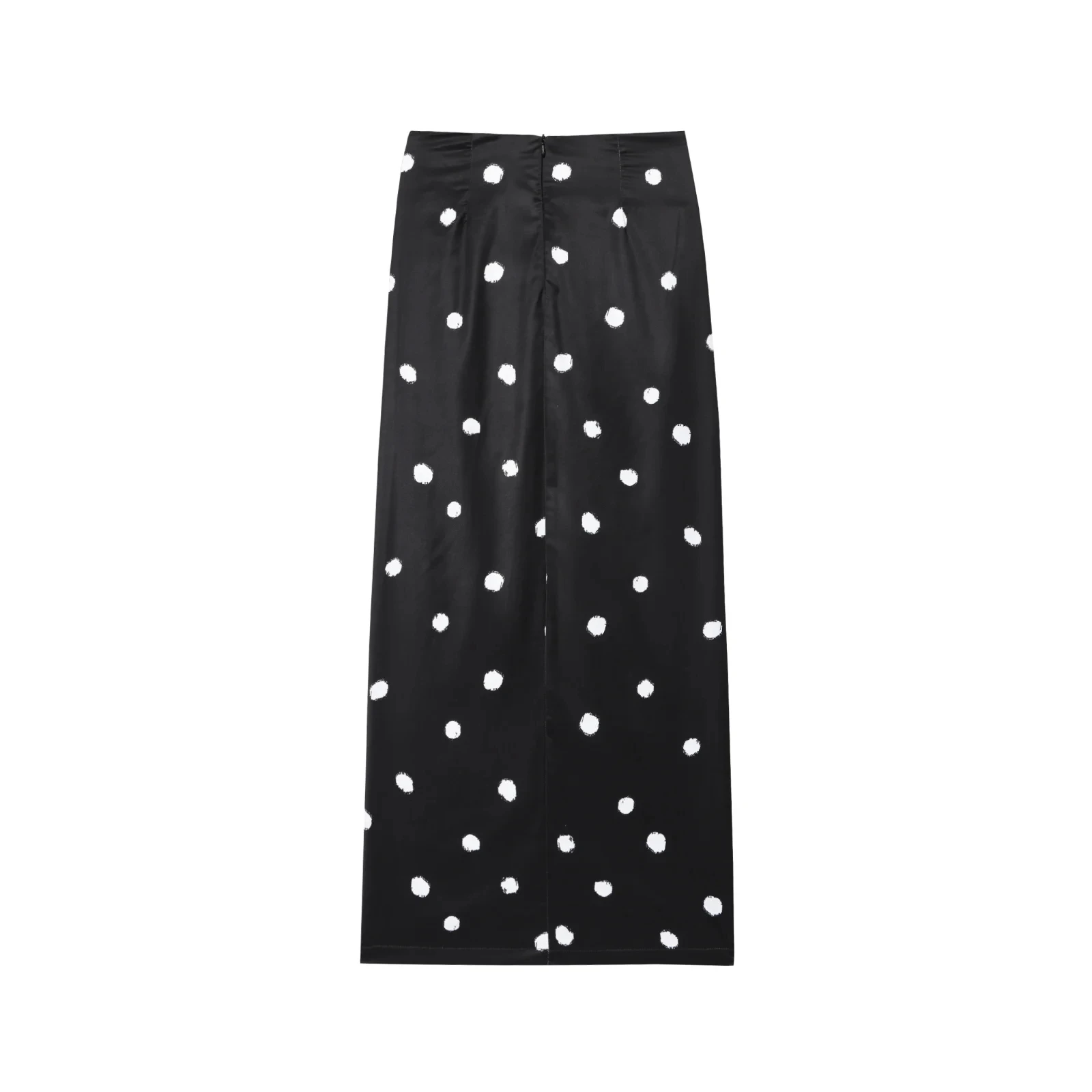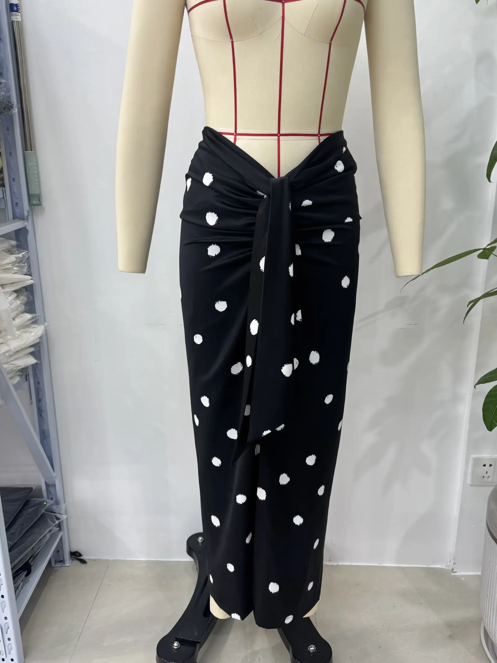 LIZAKOSHT - Polka Dot Midi Skirt Woman Elegant Casual Black High Waist Slit Skirts Fashion Bow-Tie Waist Slim Long Skirts New Summer