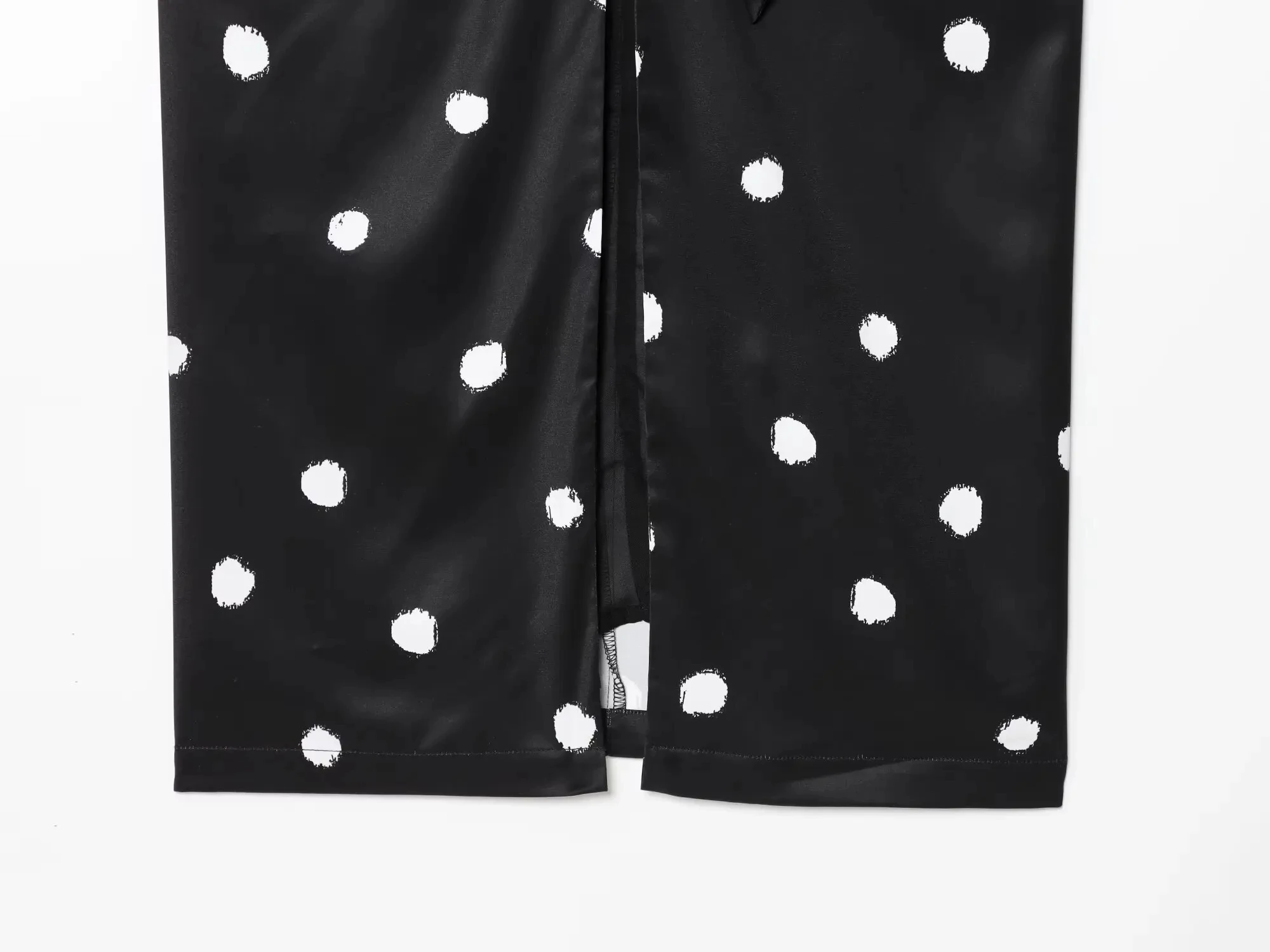 LIZAKOSHT  -  Polka Dot Midi Skirt Woman Elegant Casual Black High Waist Slit Skirts Fashion Bow-Tie Waist Slim Long Skirts New Summer