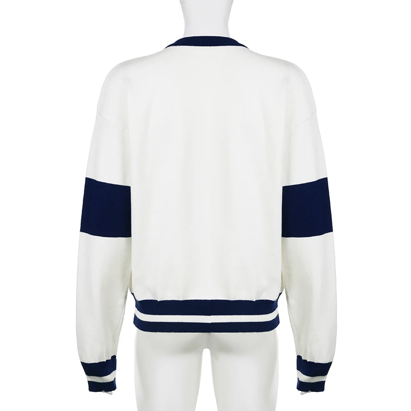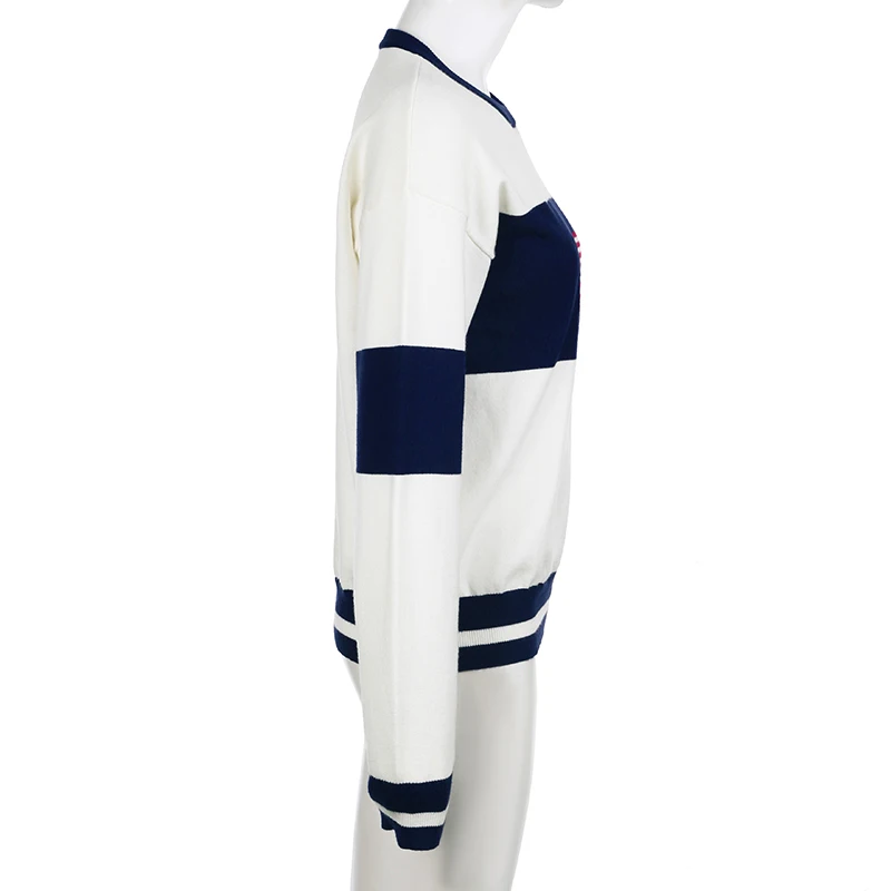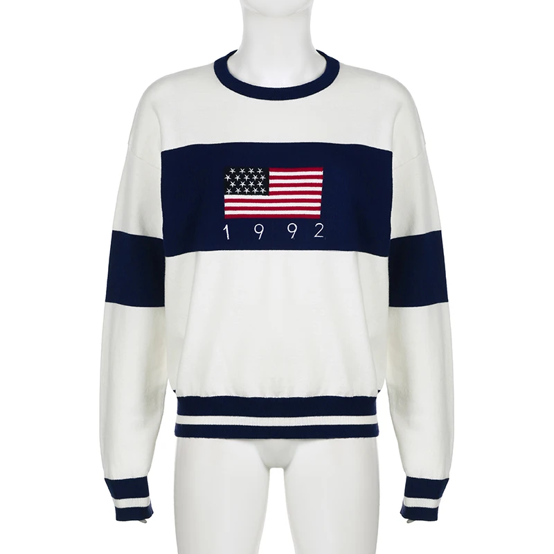 LIZAKOSHT - Preppy Style Flag Printed Knitted Pullovers Casual O-Neck Long Sleeve Sweater Women Autumn Winter Fashion Streetwear