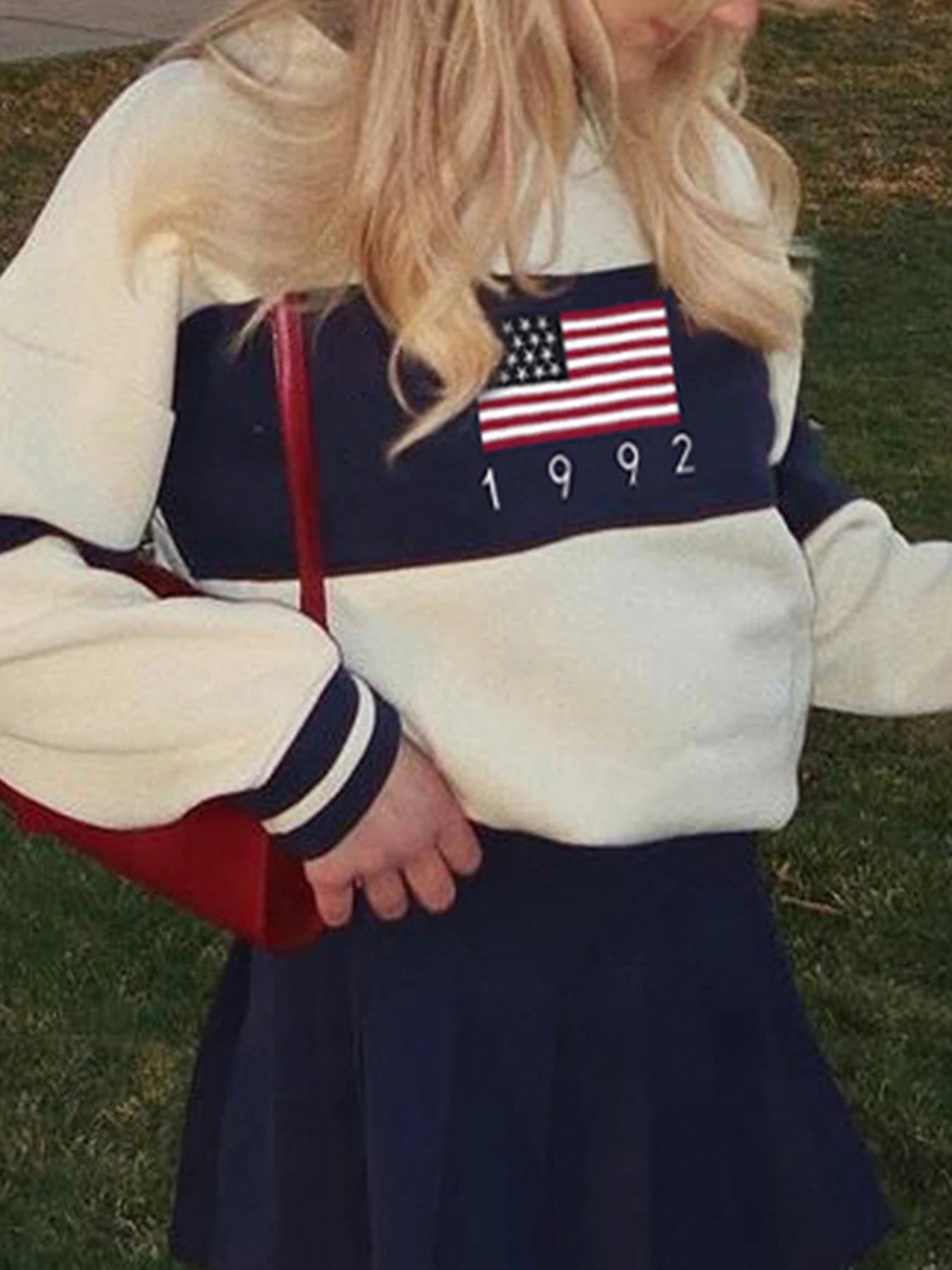 LIZAKOSHT  -  Preppy Style Flag Printed Knitted Pullovers Casual O-Neck Long Sleeve Sweater Women Autumn Winter Fashion Streetwear