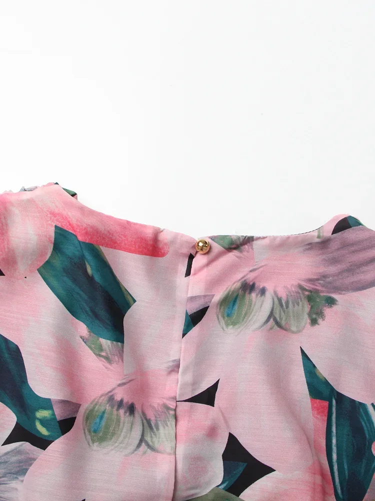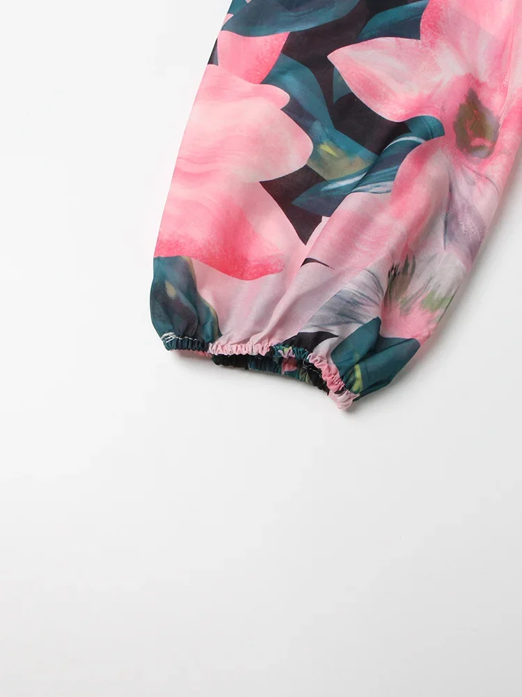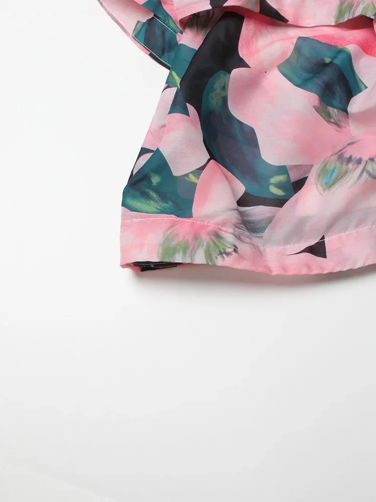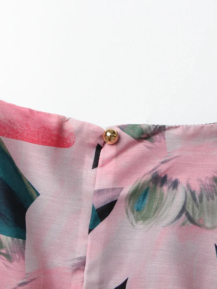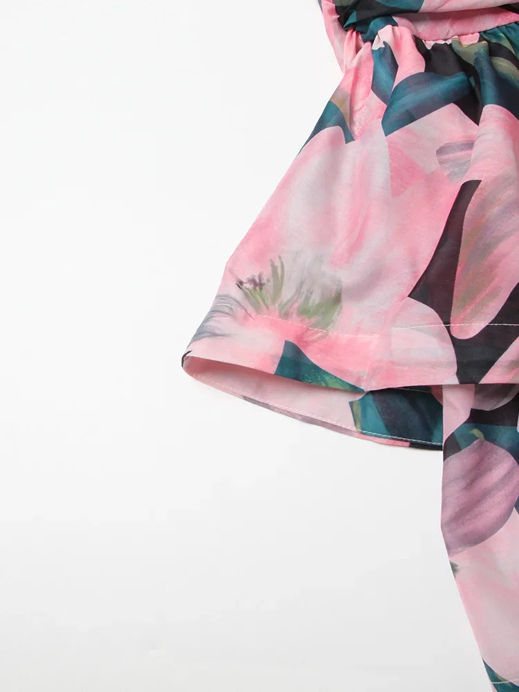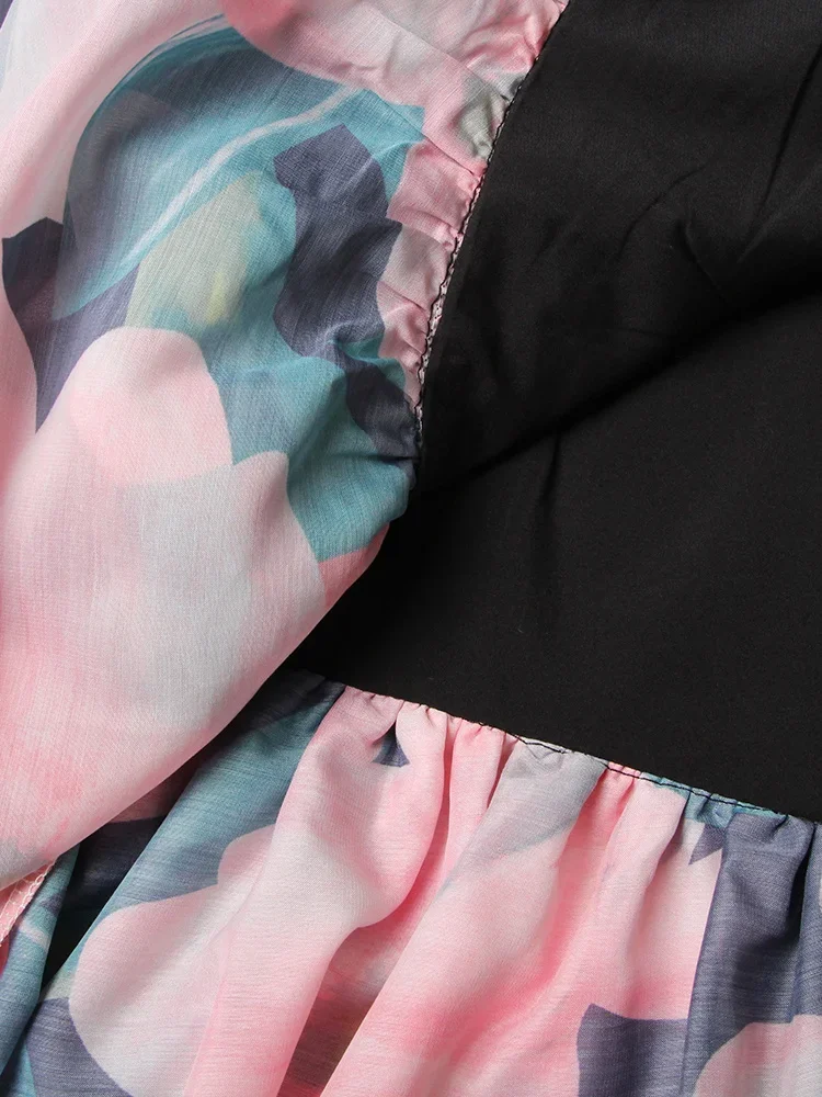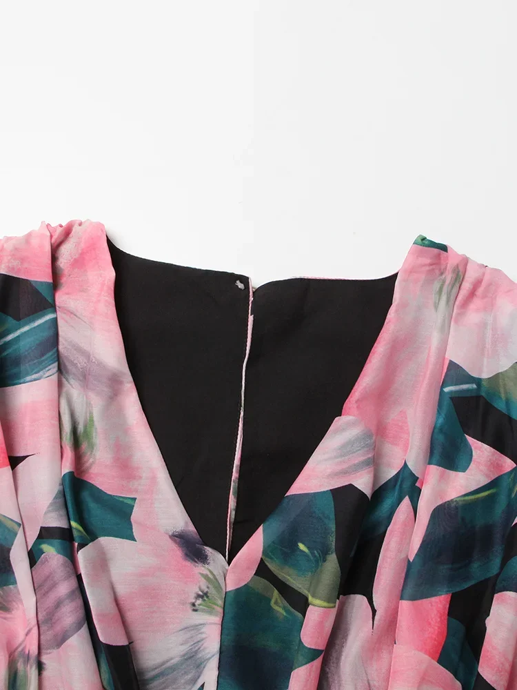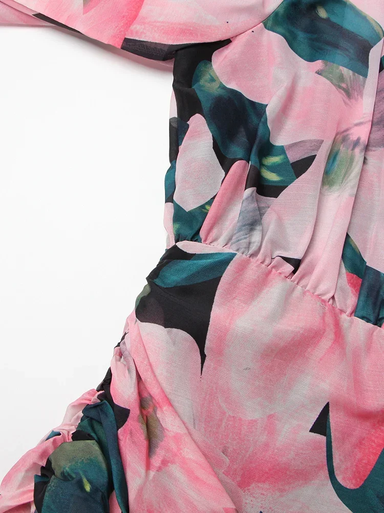 LIZAKOSHT - Print Irregular Dresses For Women V Neck Lantern Sleeve High Waist A Line Ruched Mesh Tunic Mini Dress Female Fashion New