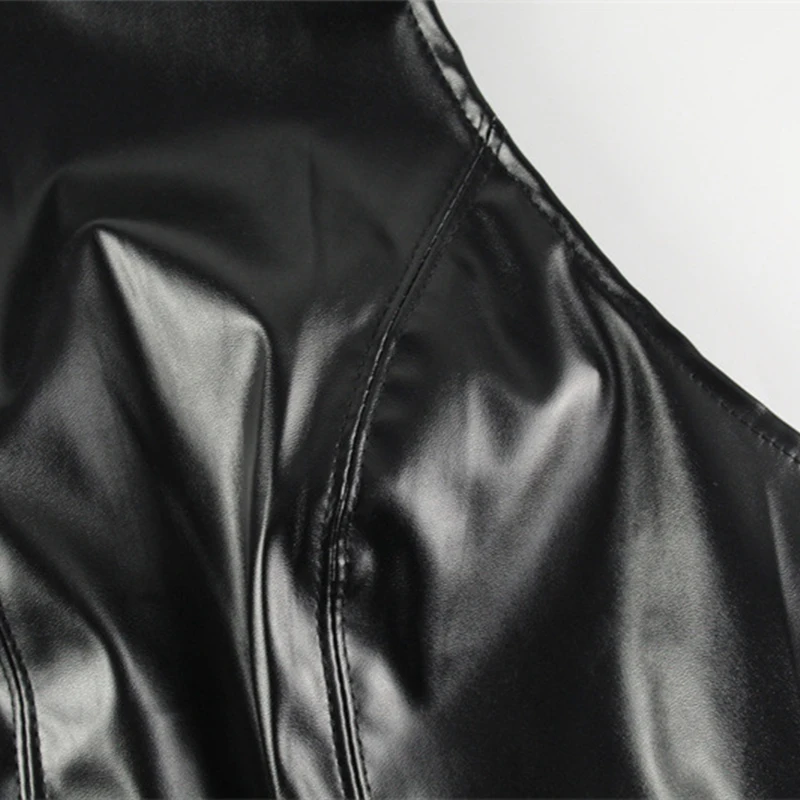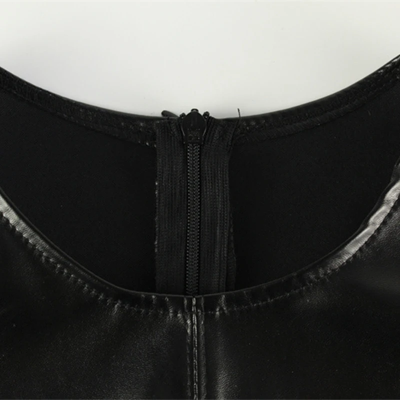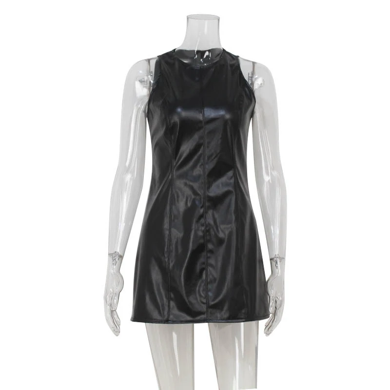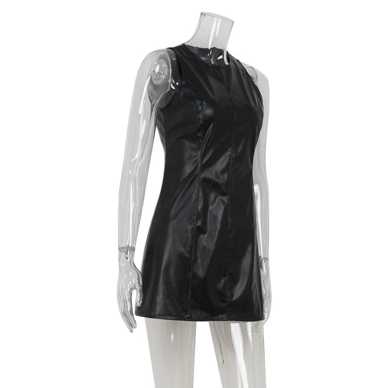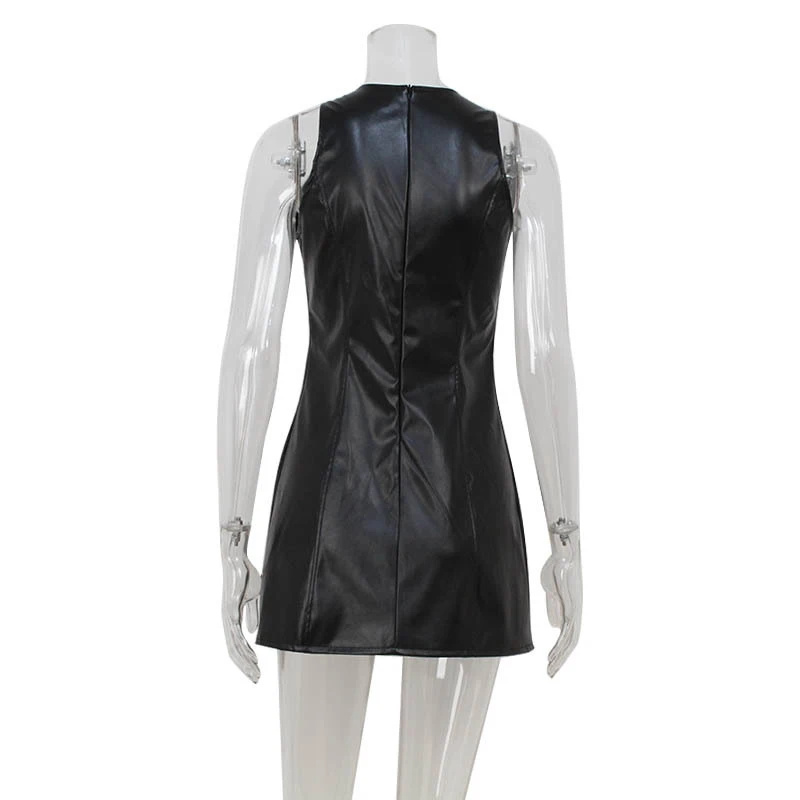 LIZAKOSHT - Pu Leather O Neck Sleeveless Black Y2k Hipster Club Short Dress Women Slim Fit Sexy Streetwear Zip Up Vestidos Clothing