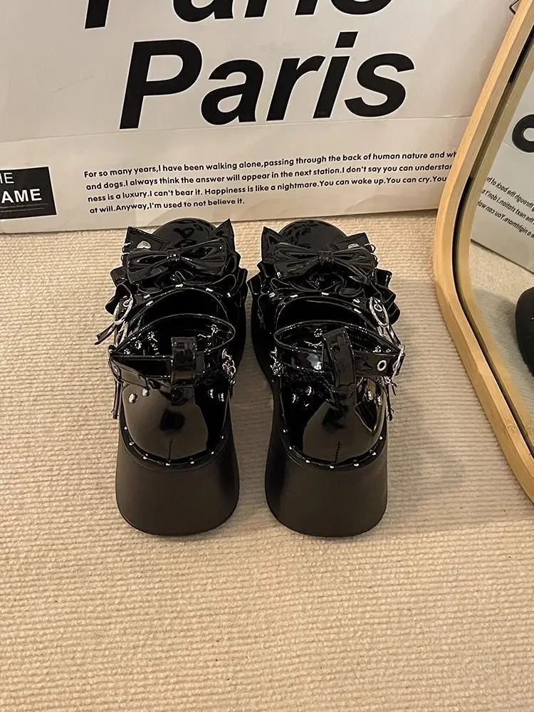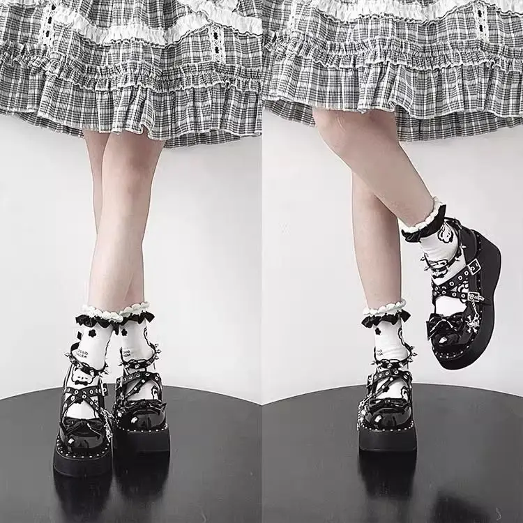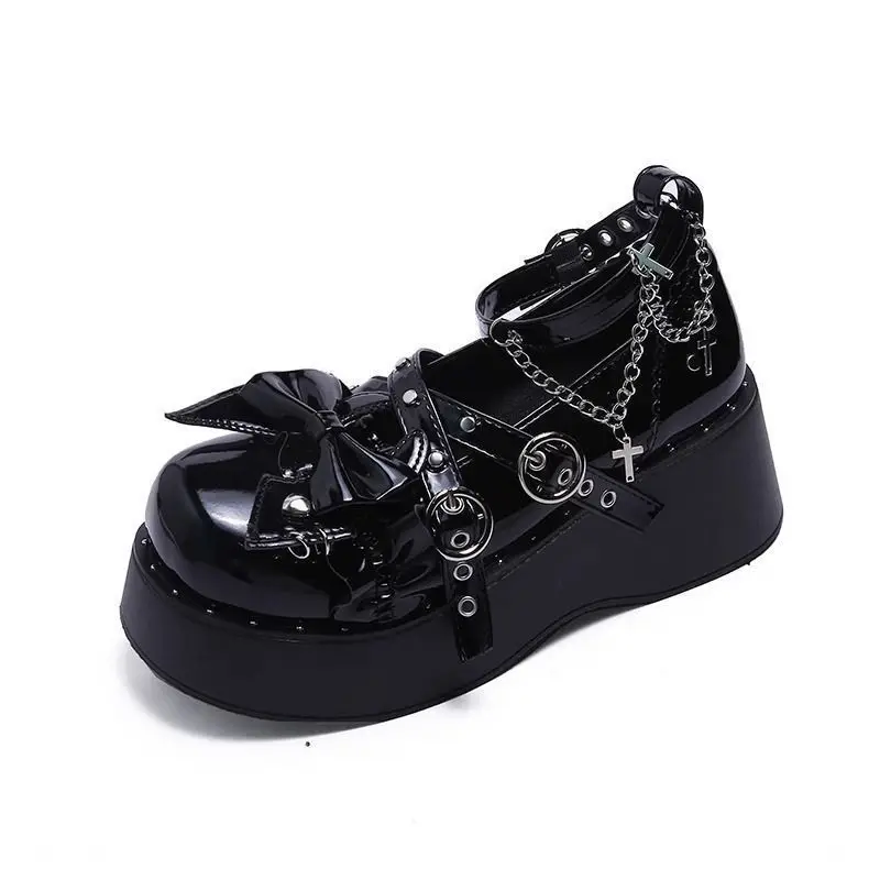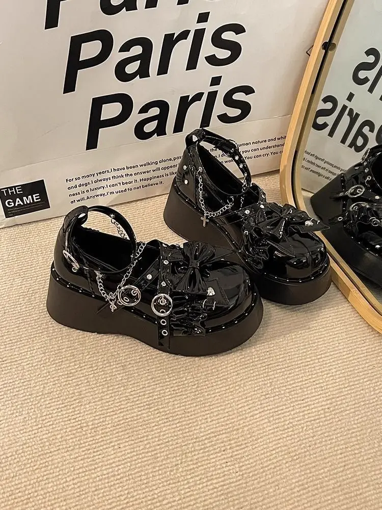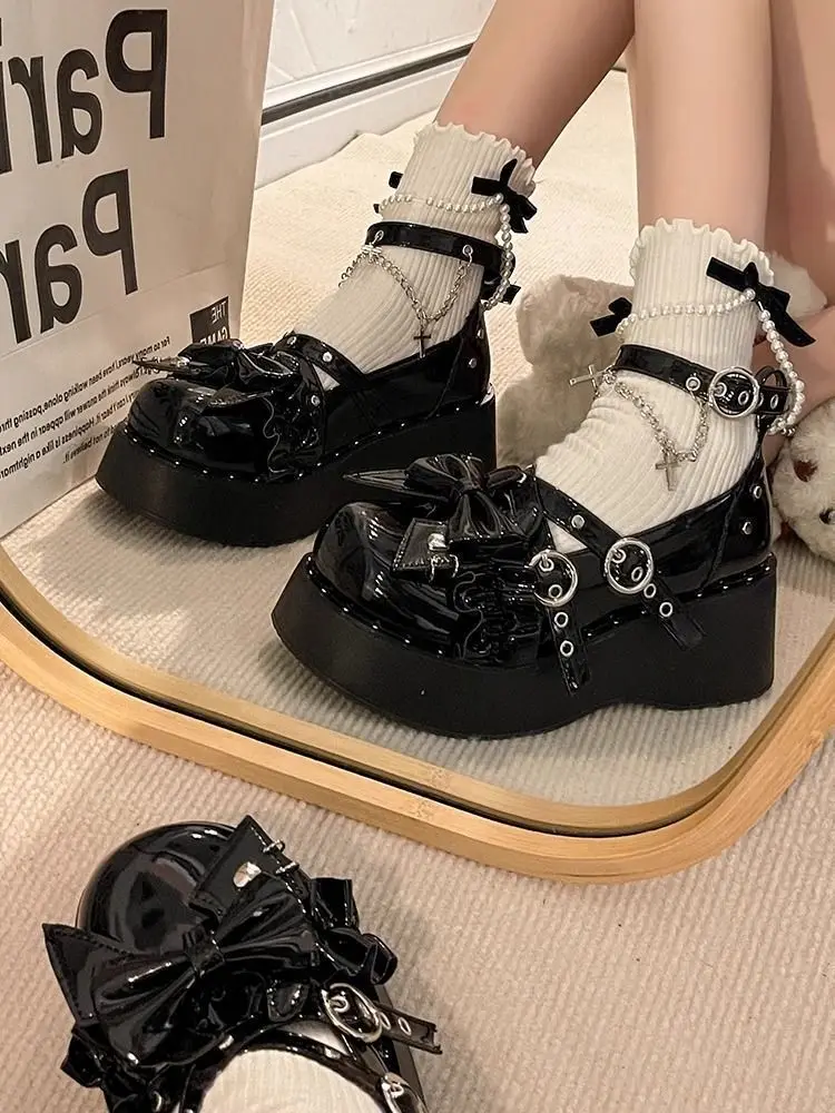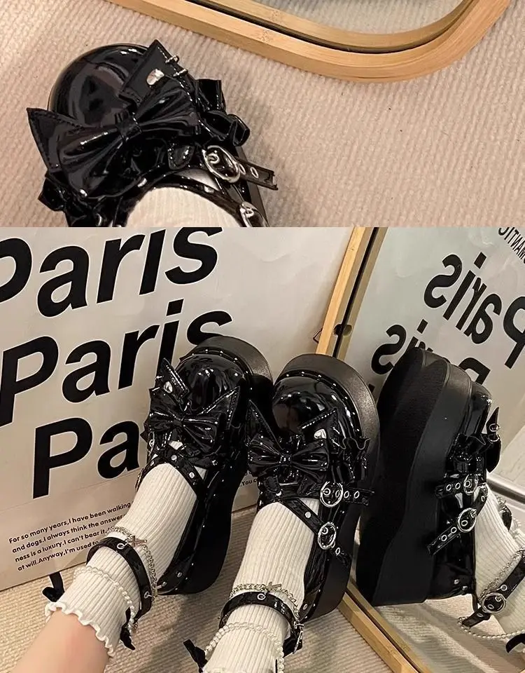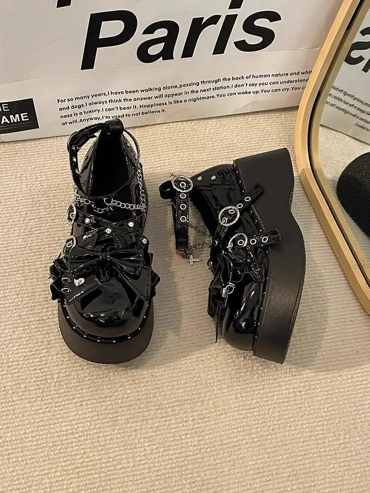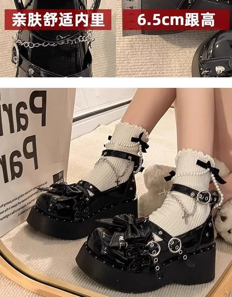 LIZAKOSHT - Punk Hot Girl Sponge Cake Leather Shoes Women's Thick Soled Shoes Japanese Jk Uniform Lolita Single Shoes Sweet Girl Tea Party