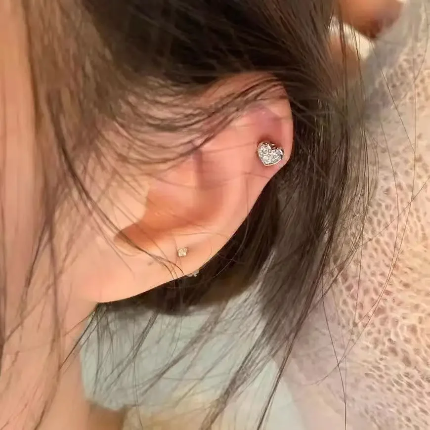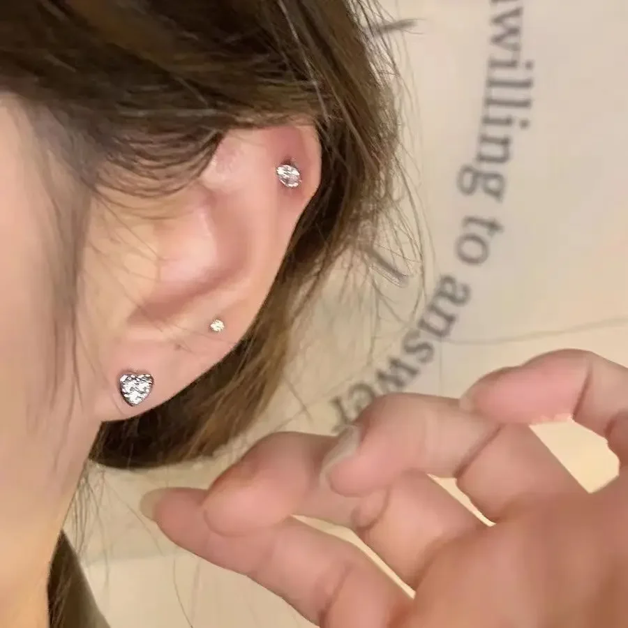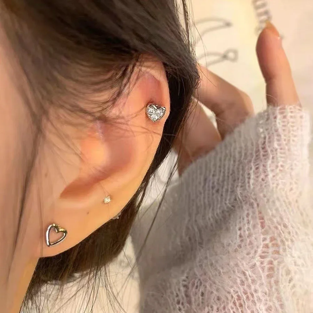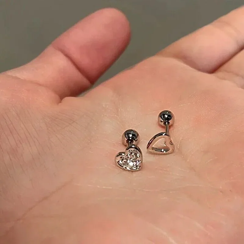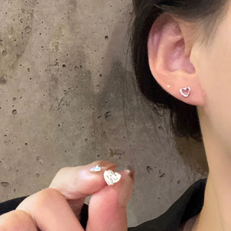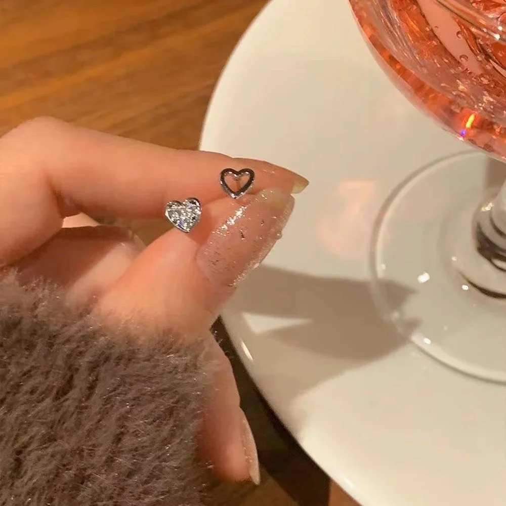LIZAKOSHT - Punk Zircon Heart Earrings Women Irregular Hollowed Ear Studs Love Minimalist Earring Sweet Girls Jewelry Accessories