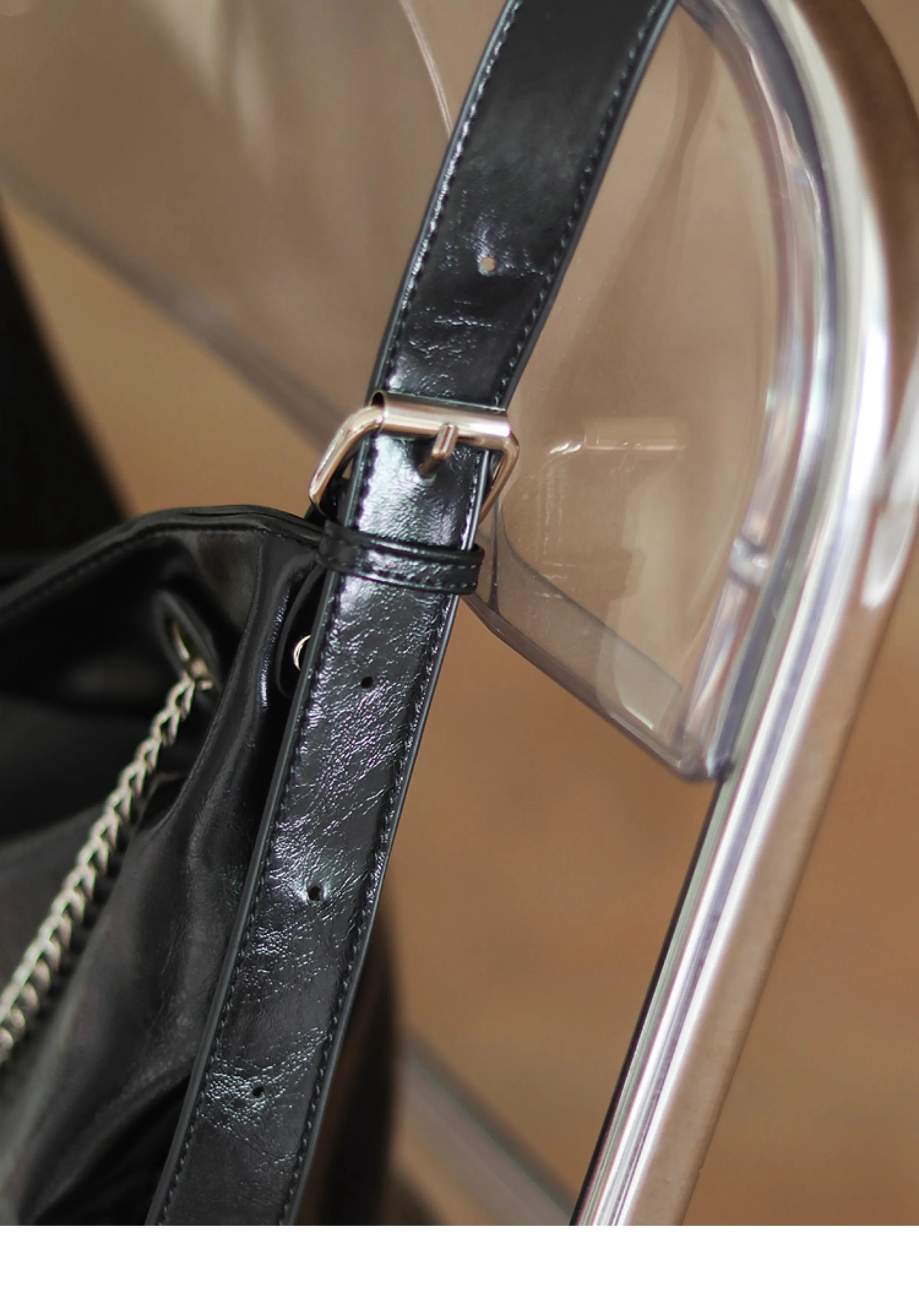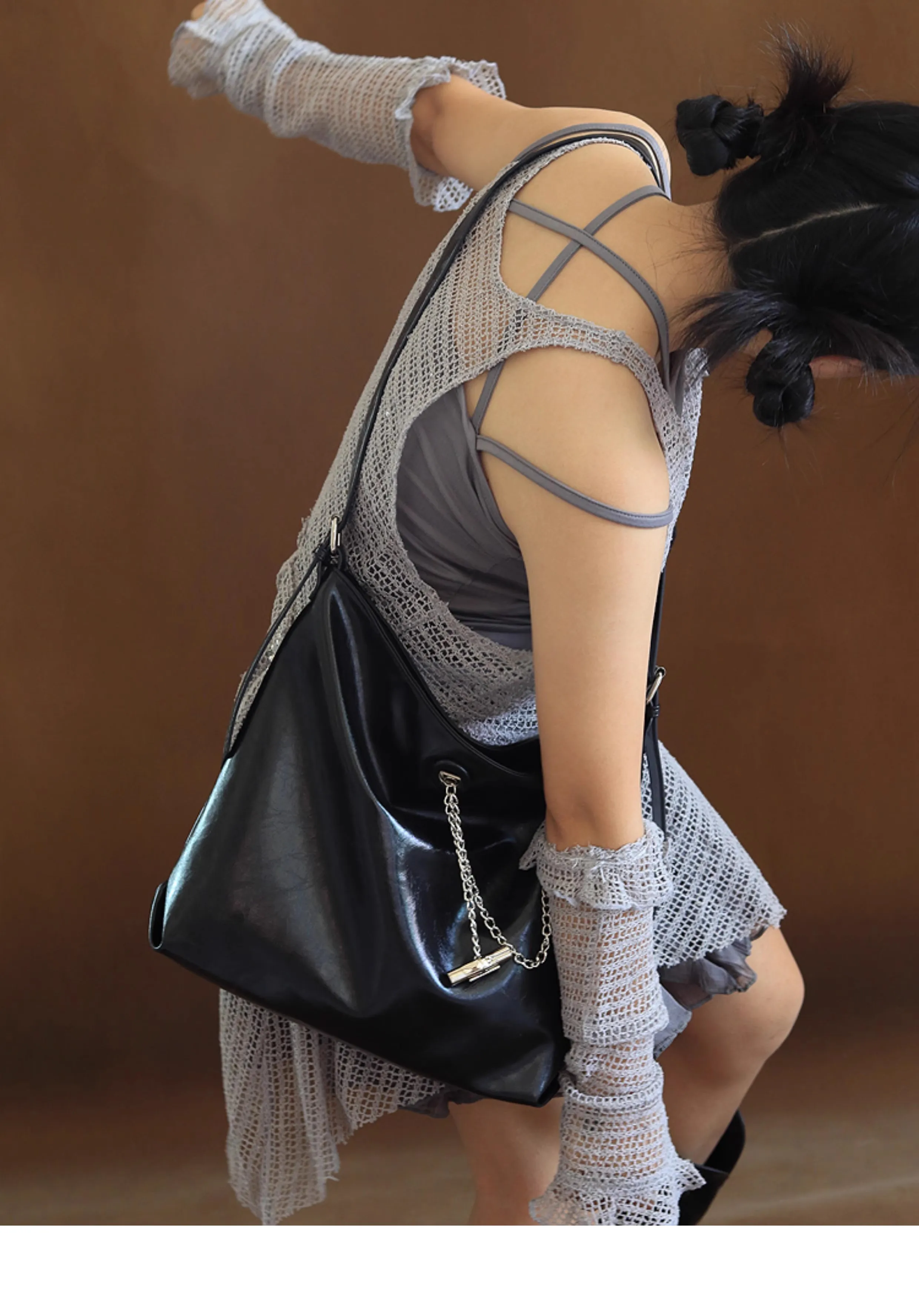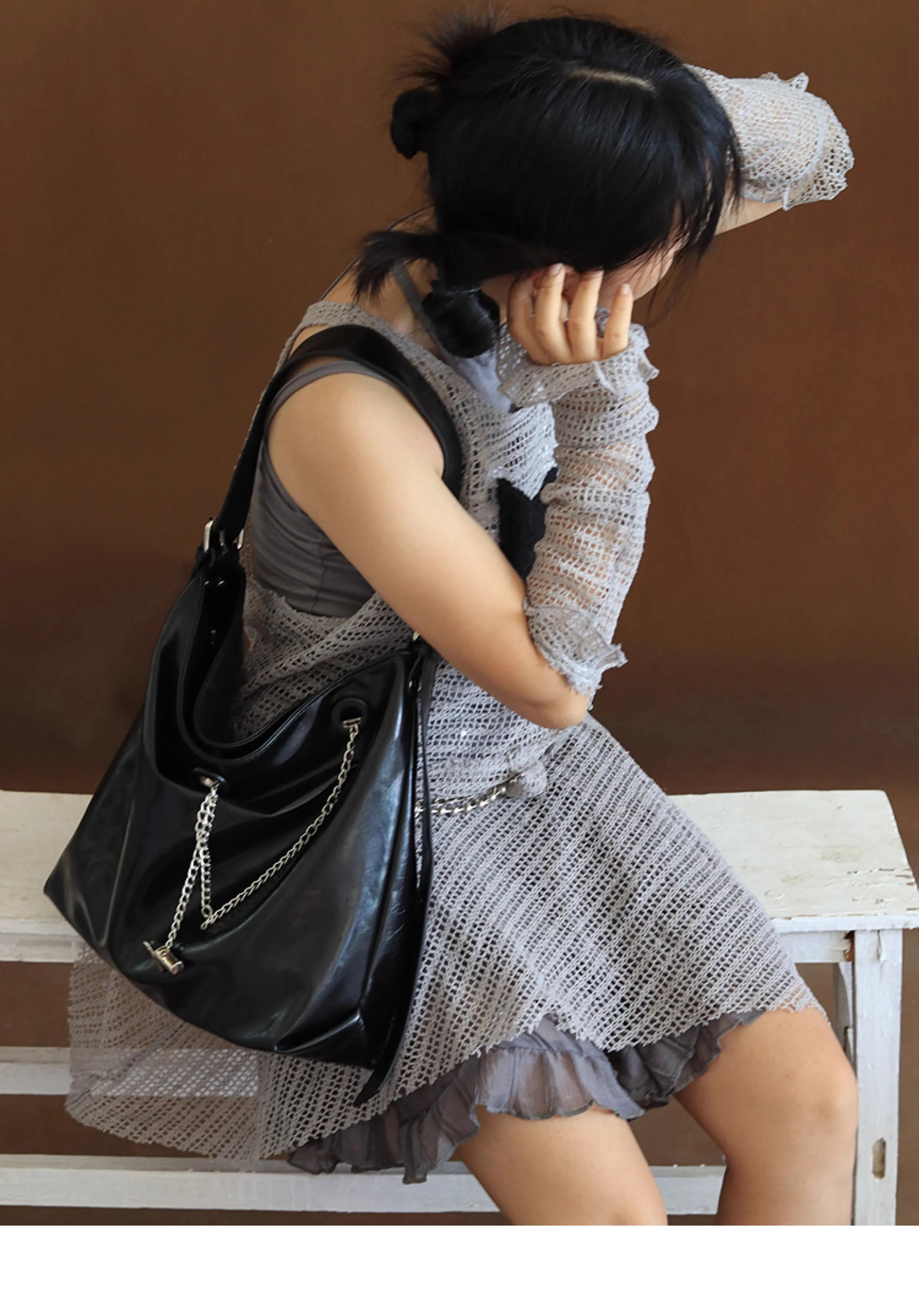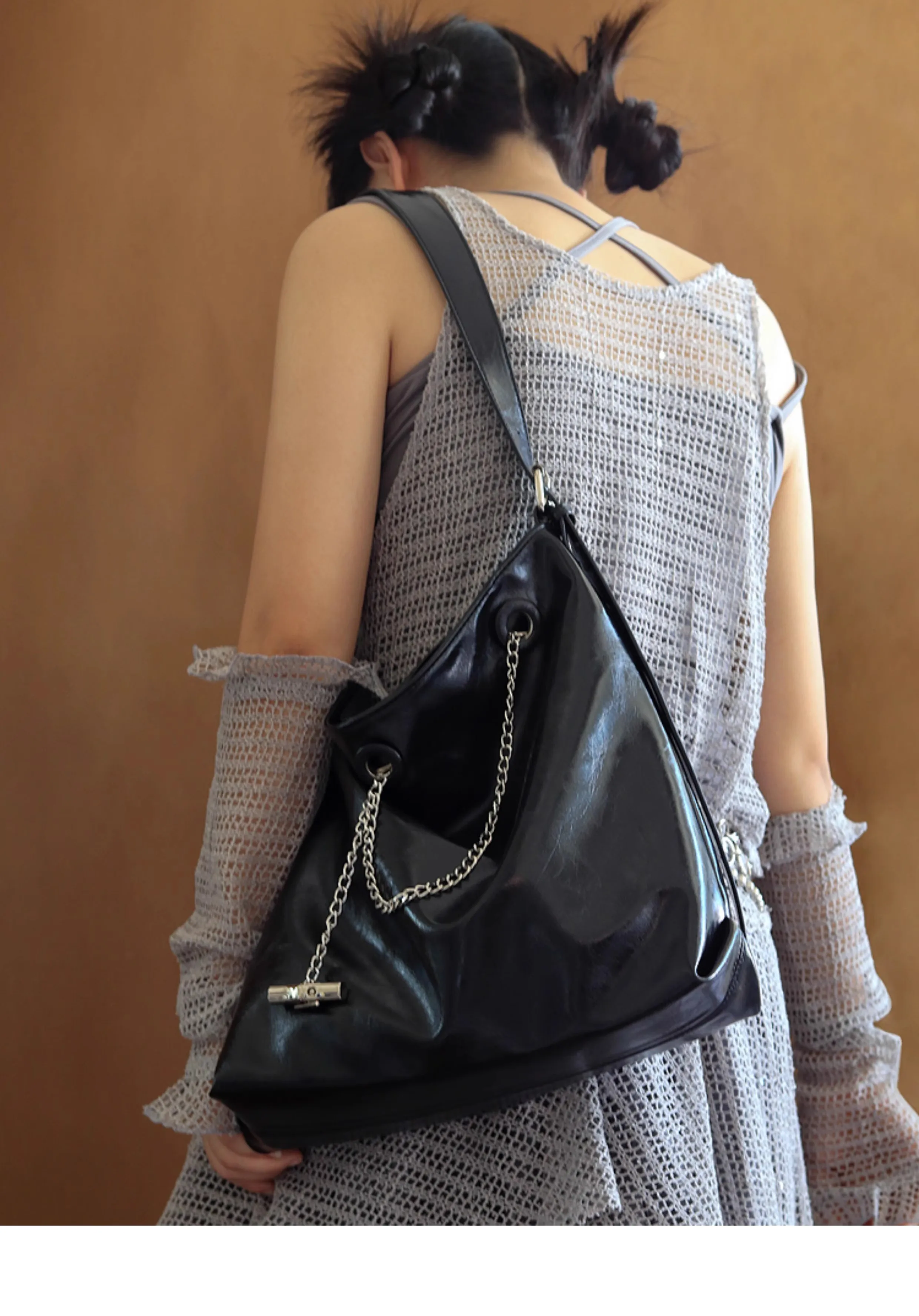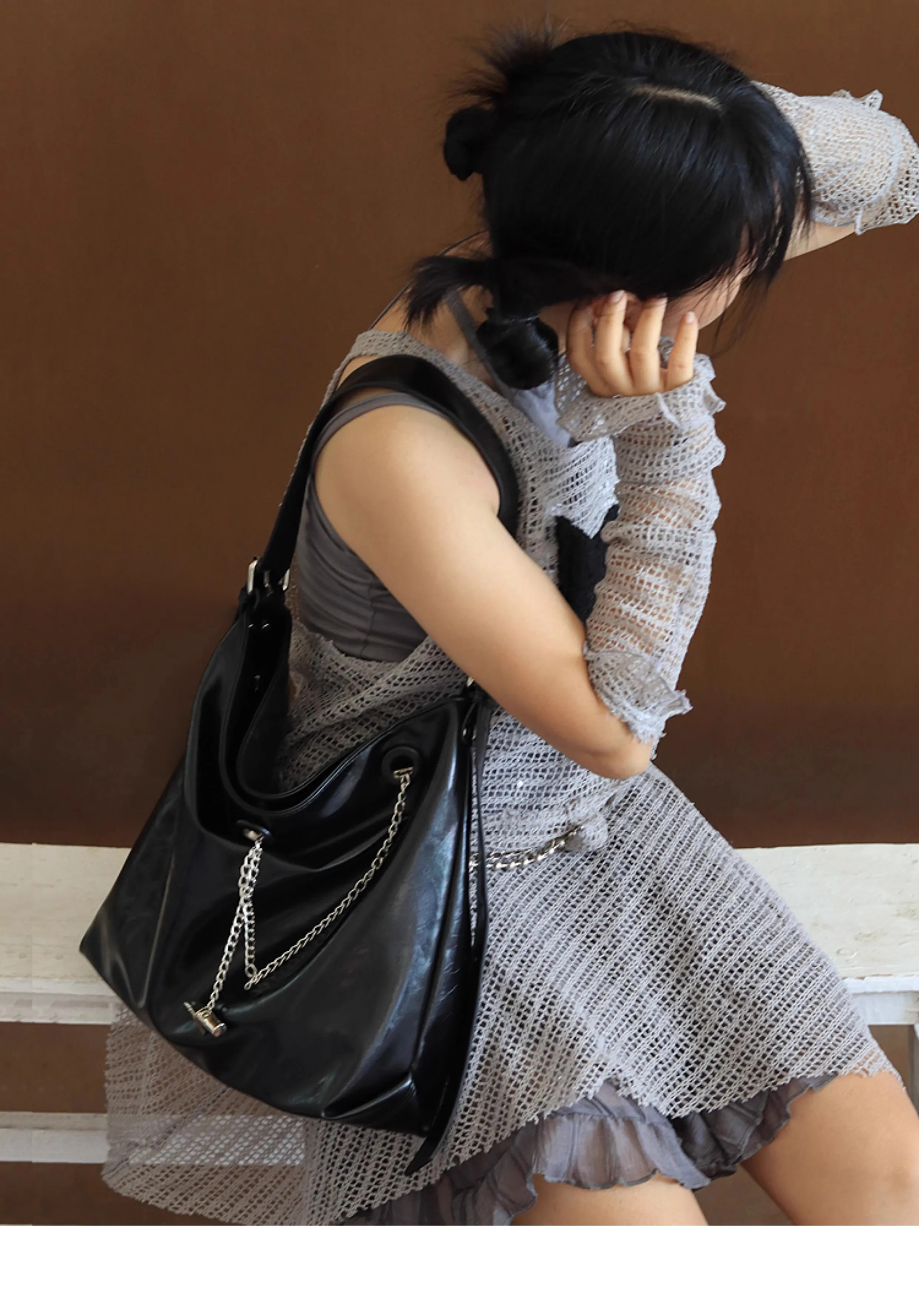 LIZAKOSHT - Pure Black Womens Shoulder Bag Chains Y2k Gothic Fashion Large Capacity Tote Bag Pu Leather Casual Advanced Ladies Handbag