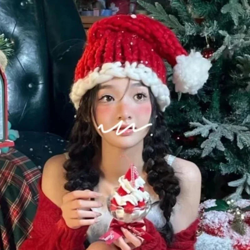 LIZAKOSHT - Red Christmas Hats Women New Year 2024 Knitted Black Japanese Sweet Hats Female Korea Princess Party Elegant Hats Accessories