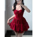 LIZAKOSHT - Red Lace Patchwork Design Strappy Dress Women New Summer Korean Style Fashion Evening Party Outfits Y2k Causal Dresses New