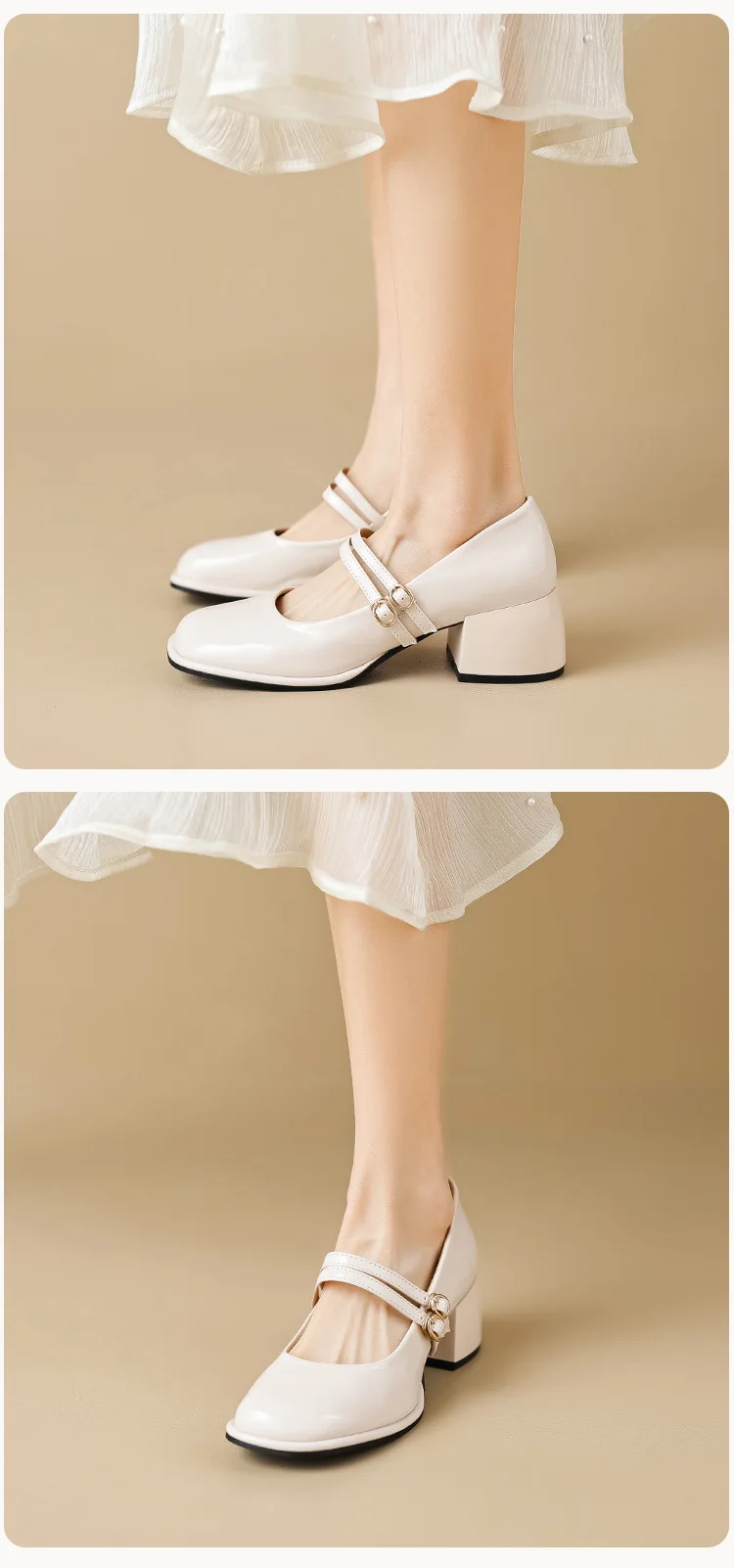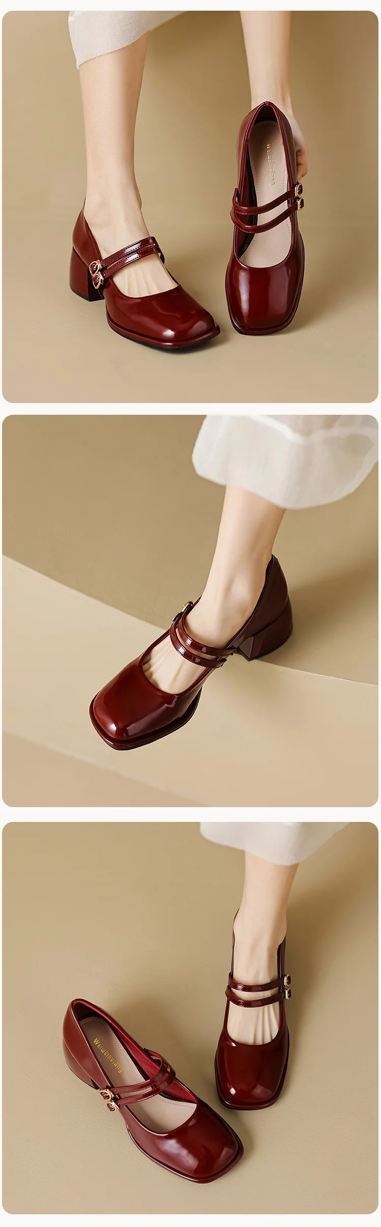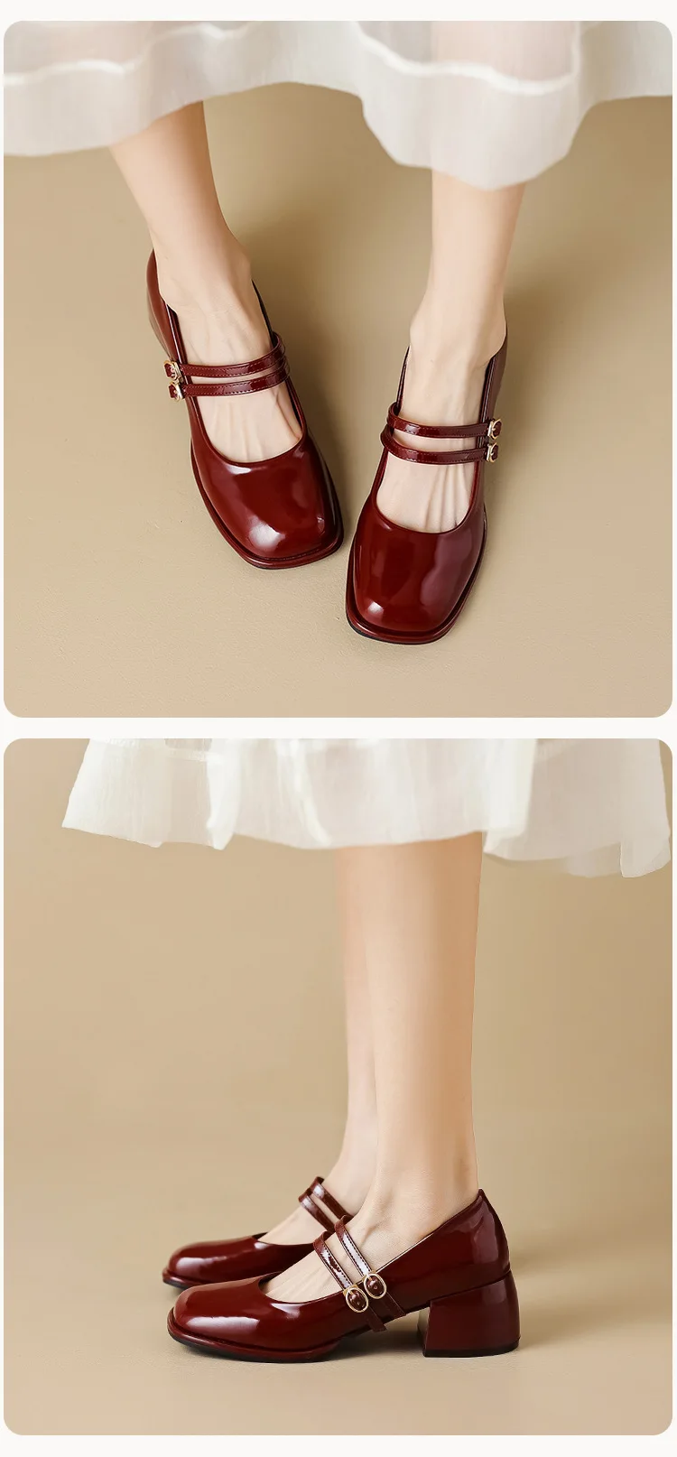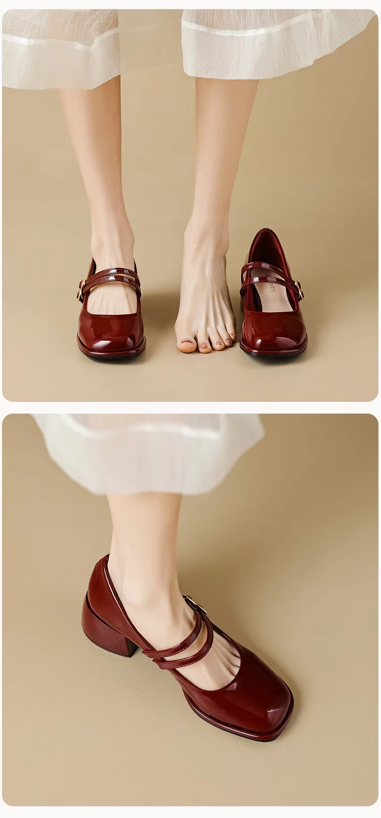 LIZAKOSHT  -  Red Patent Leather Mary Janes Shoes 2025 Summer New Fashion Square Toe Women Pumps Comfort Chunky Heel Retro Ladies Single Shoes