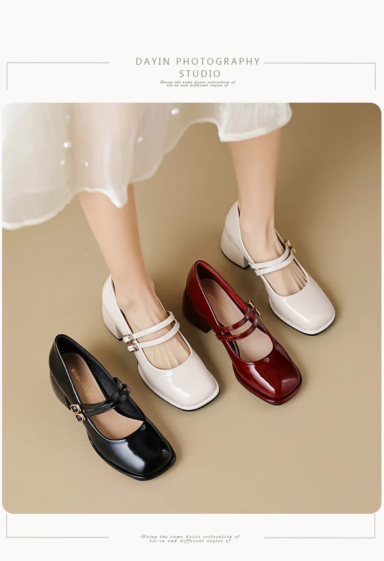 LIZAKOSHT - Red Patent Leather Mary Janes Shoes 2025 Summer New Fashion Square Toe Women Pumps Comfort Chunky Heel Retro Ladies Single Shoes
