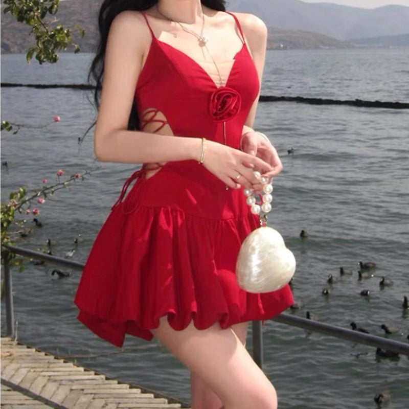 LIZAKOSHT  -  Red Sexy Elegant Dresses Women Black Coquette Aesthetic One Piece Bodycone Mini Sleeveless Short Dress Y2k Sweet Dress