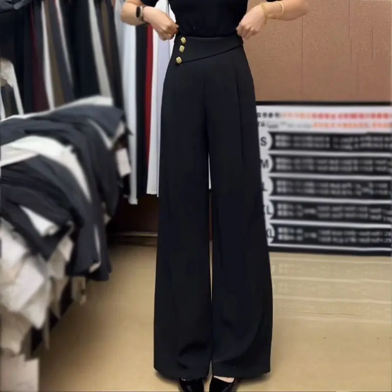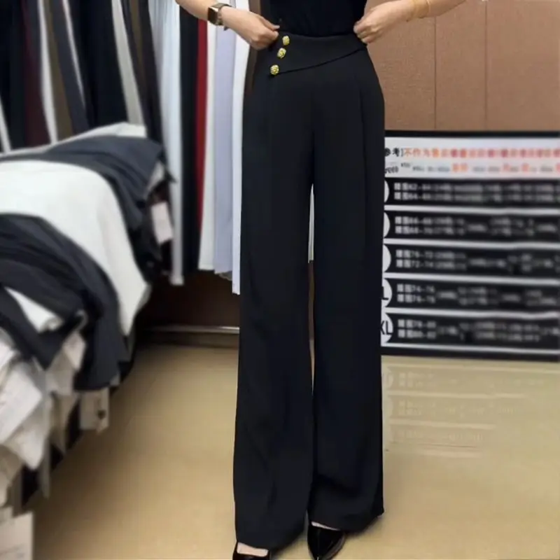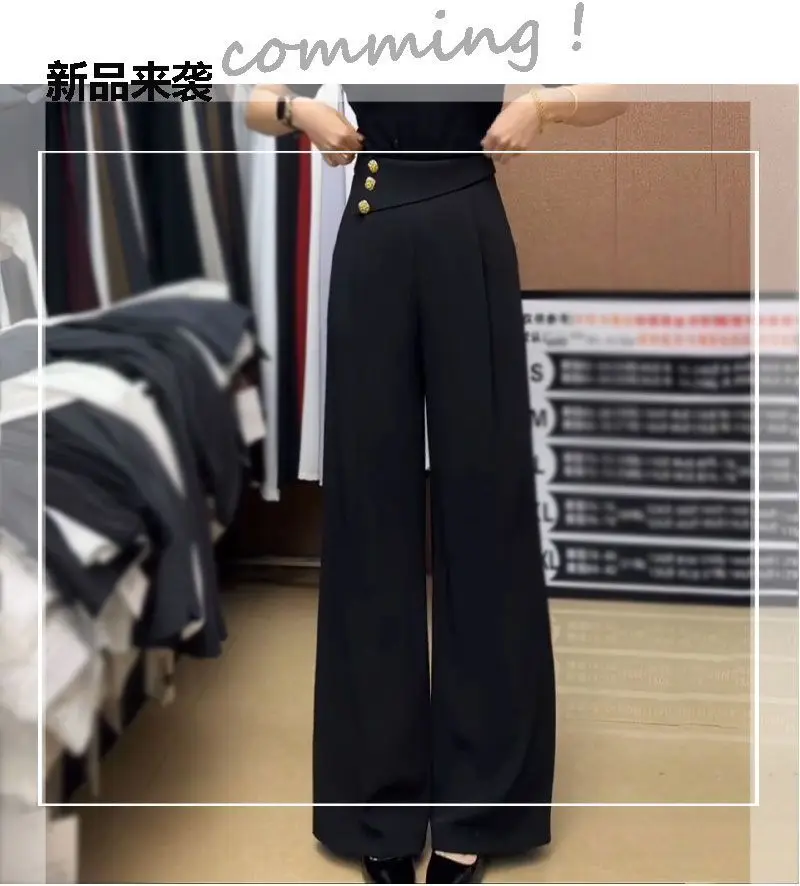 LIZAKOSHT  -  Retro Narrow Version of Wide-leg Pants Draped with Ice Silk Waist-tight Straight Pear Shape to Make You Look Slim
