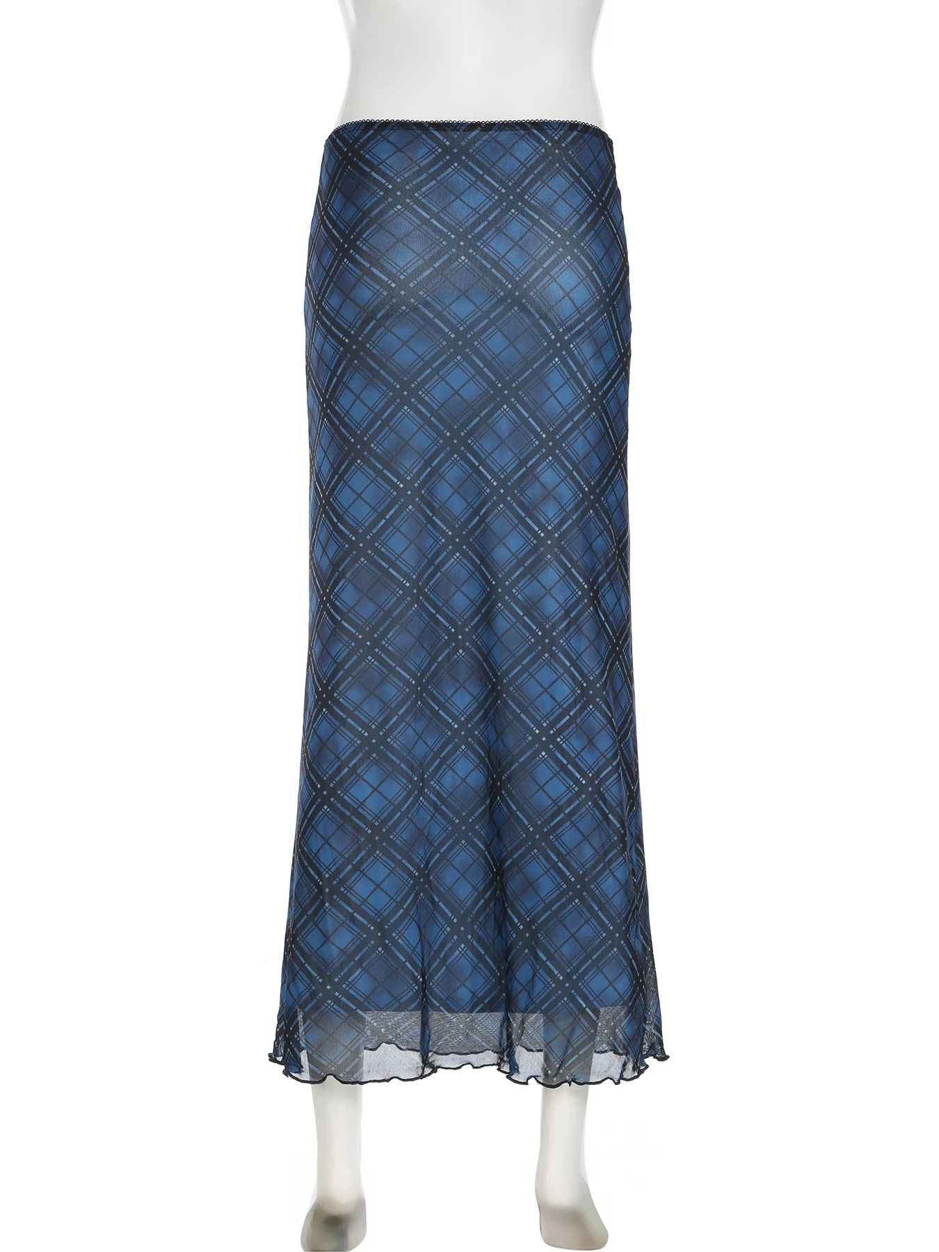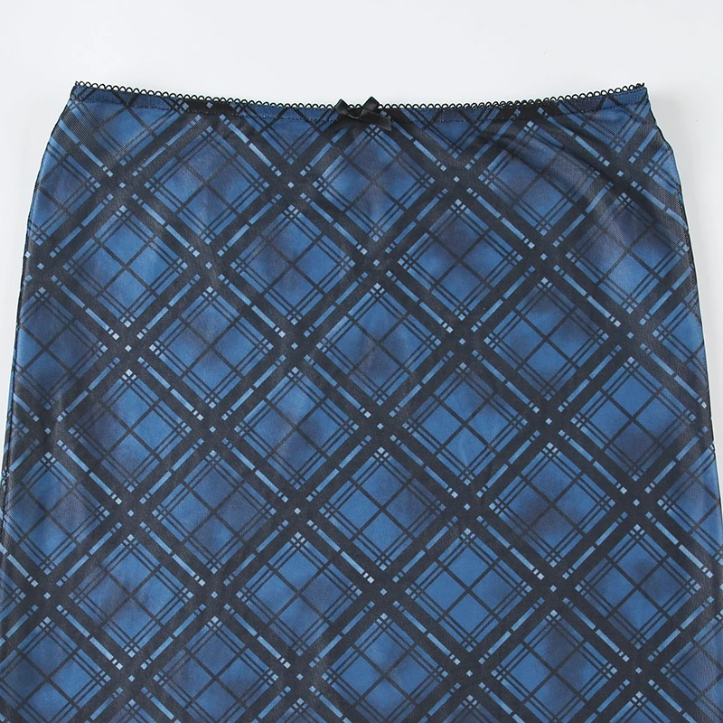 LIZAKOSHT - Retro Plaid Print Mesh Long Skirts Preppy Style Slim Fit Y2k Midi Skirt Chic Low Waist Straight Skirt Korean