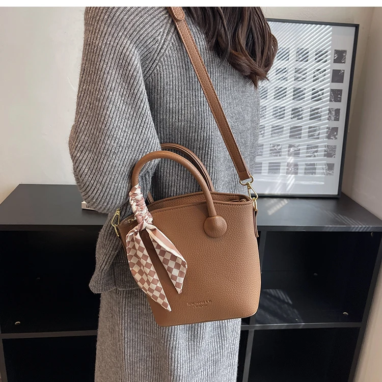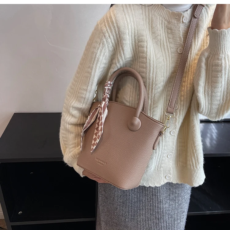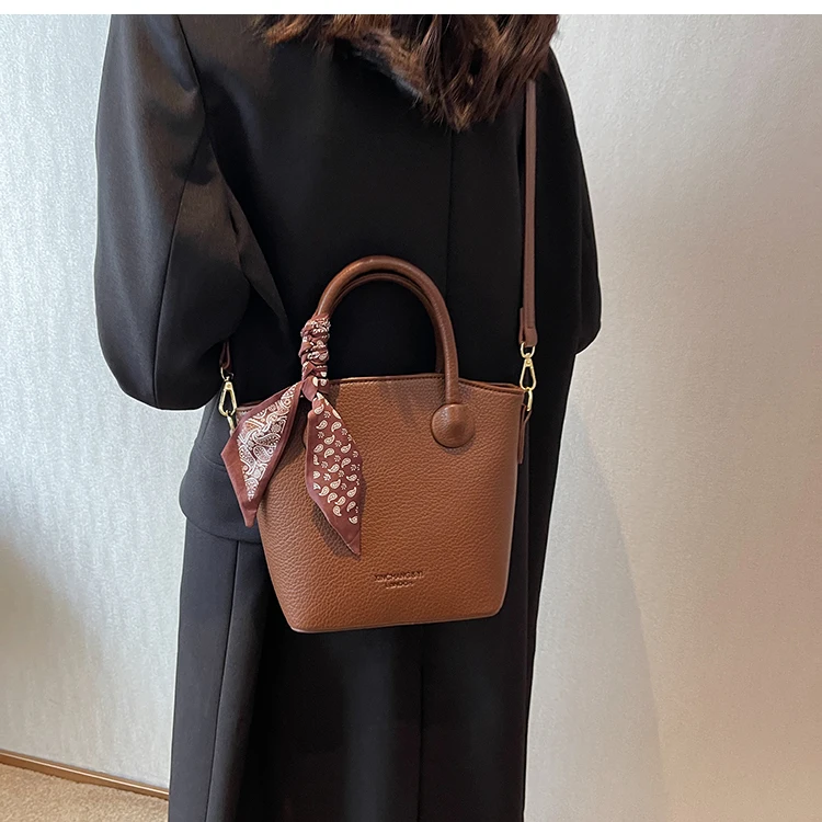 LIZAKOSHT - Retro Small Vegetable Basket Bag New Female PU Leather Bag Cash Burst Simplicity Crossbody Bag Minority Bucket Handbag