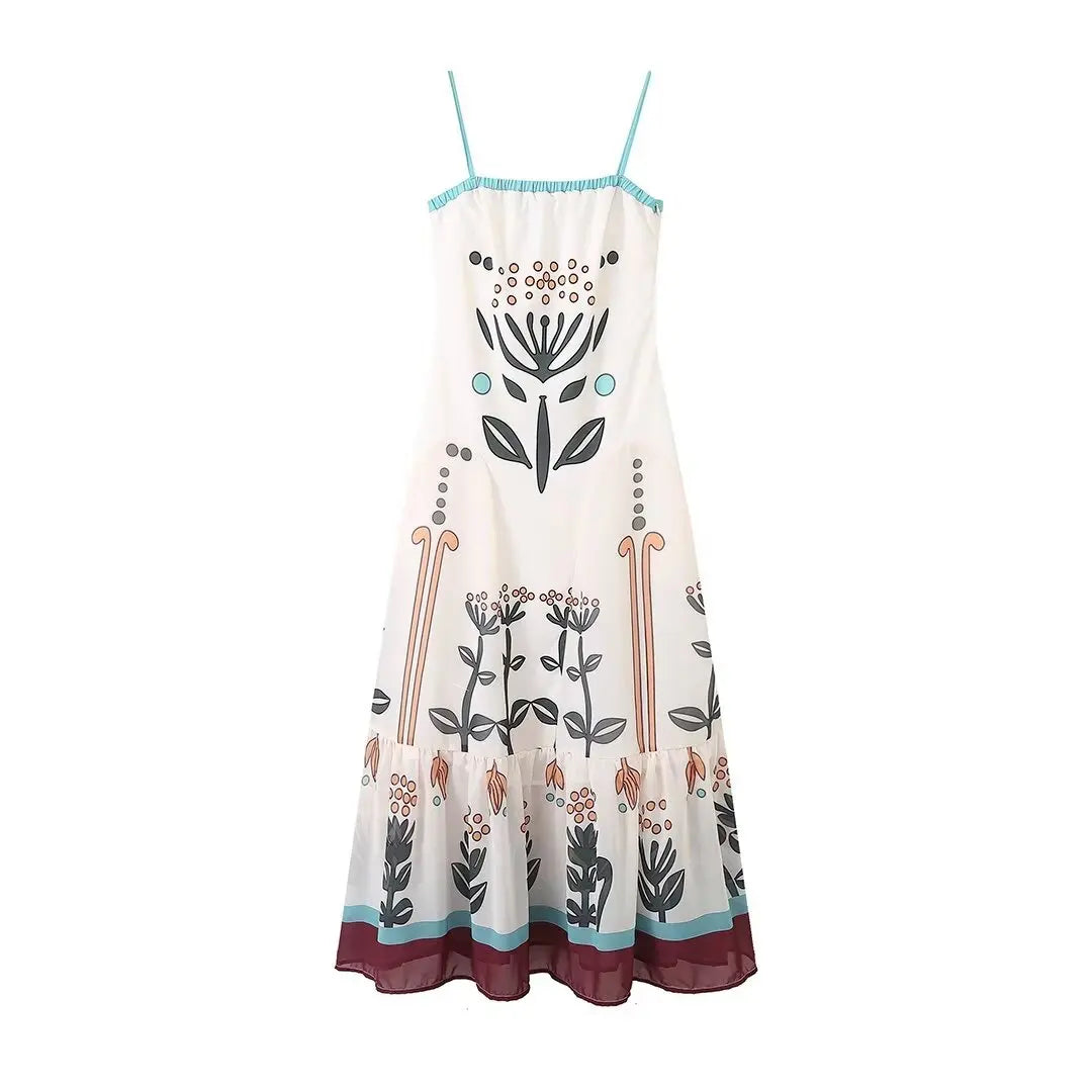 LIZAKOSHT - Retro Tube Top Print Slim Dress Sling Jumpsuit Women Spring and Summer