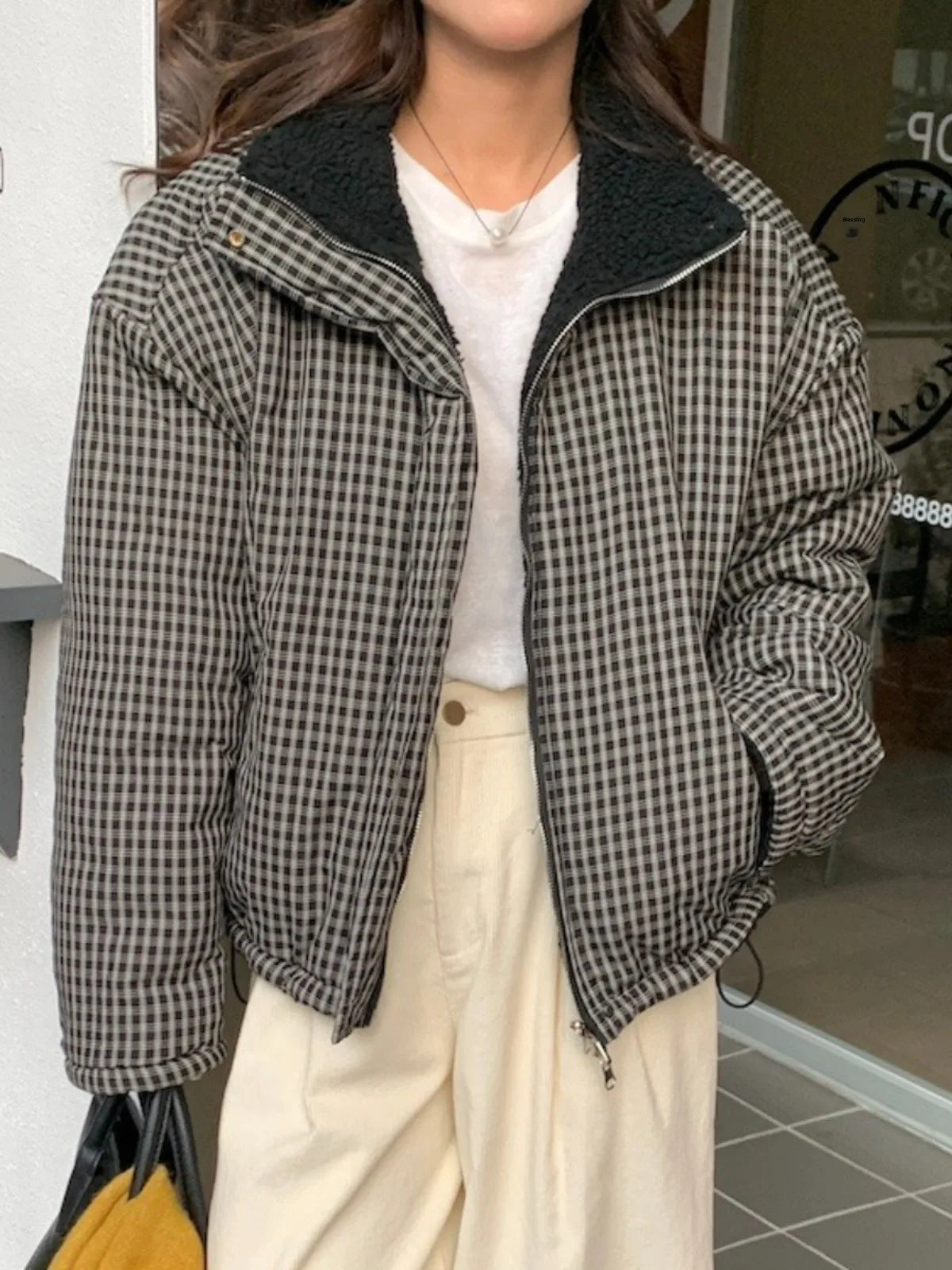 LIZAKOSHT - Retro Winter Cotton Jaet Women's Loose Long Sve Stand Collar Cheered Warm Coat Casual Versatile Two-Sided Wear