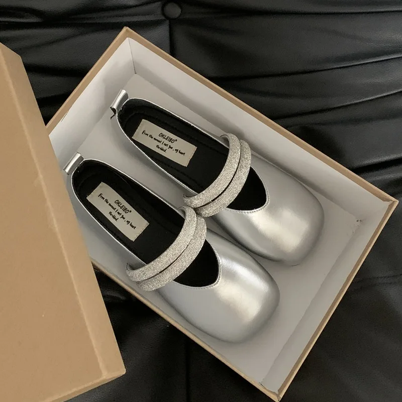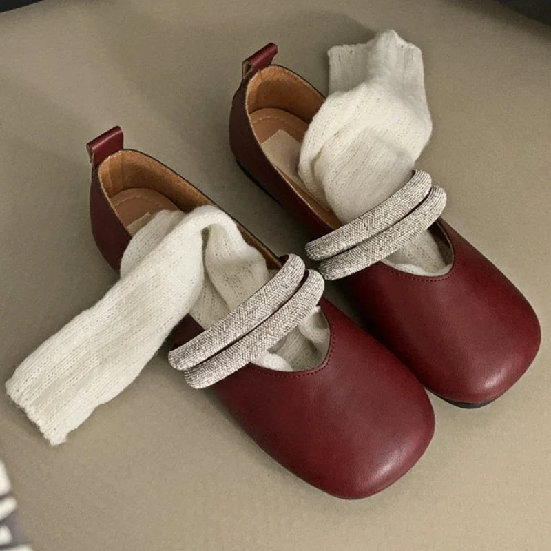 LIZAKOSHT  -  Rhinestone Designer Mary Jane Shoes Fashion Comfort Loafers Women Soft Sole Retro Mules Pumps Shiny Flat Ballet Shoes Female