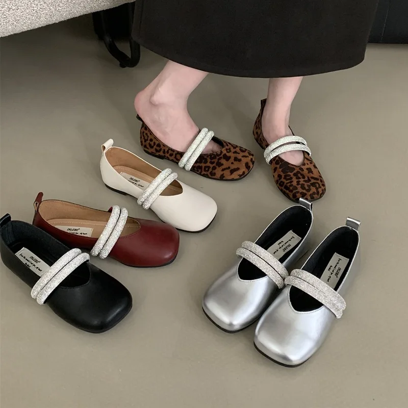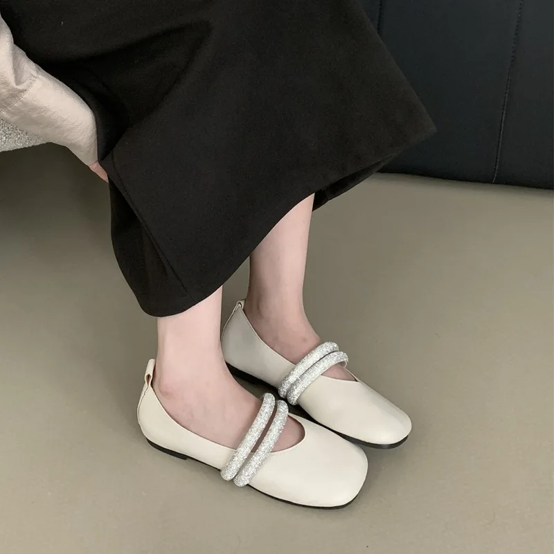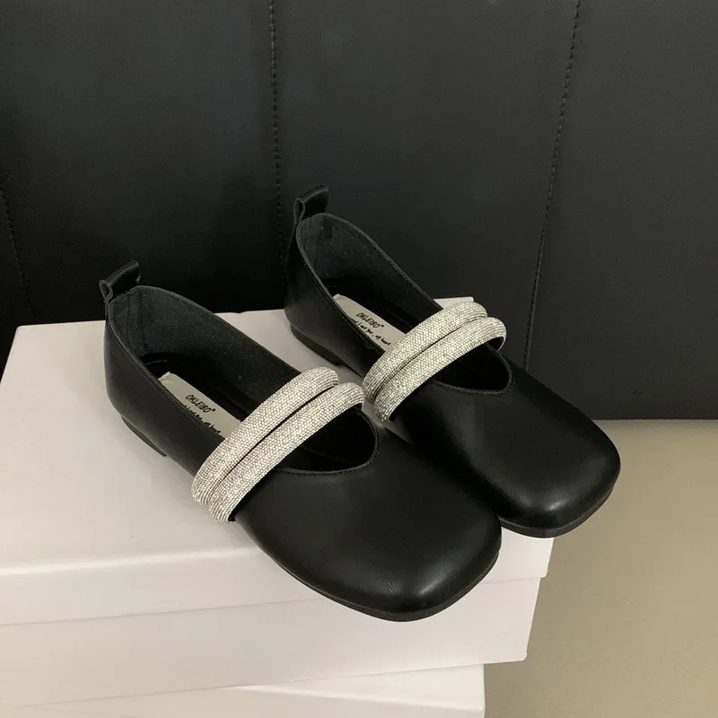 LIZAKOSHT - Rhinestone Designer Mary Jane Shoes Fashion Comfort Loafers Women Soft Sole Retro Mules Pumps Shiny Flat Ballet Shoes Female