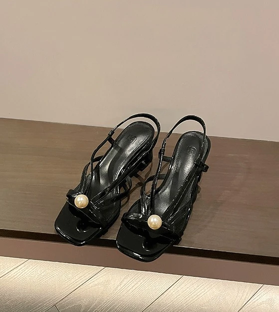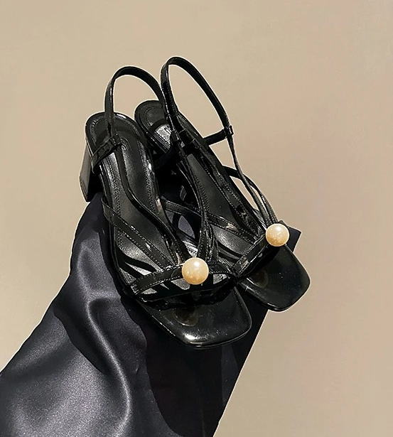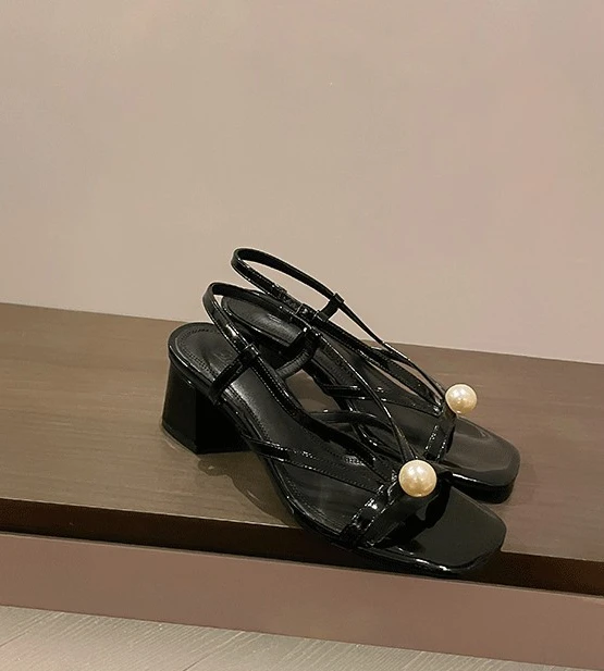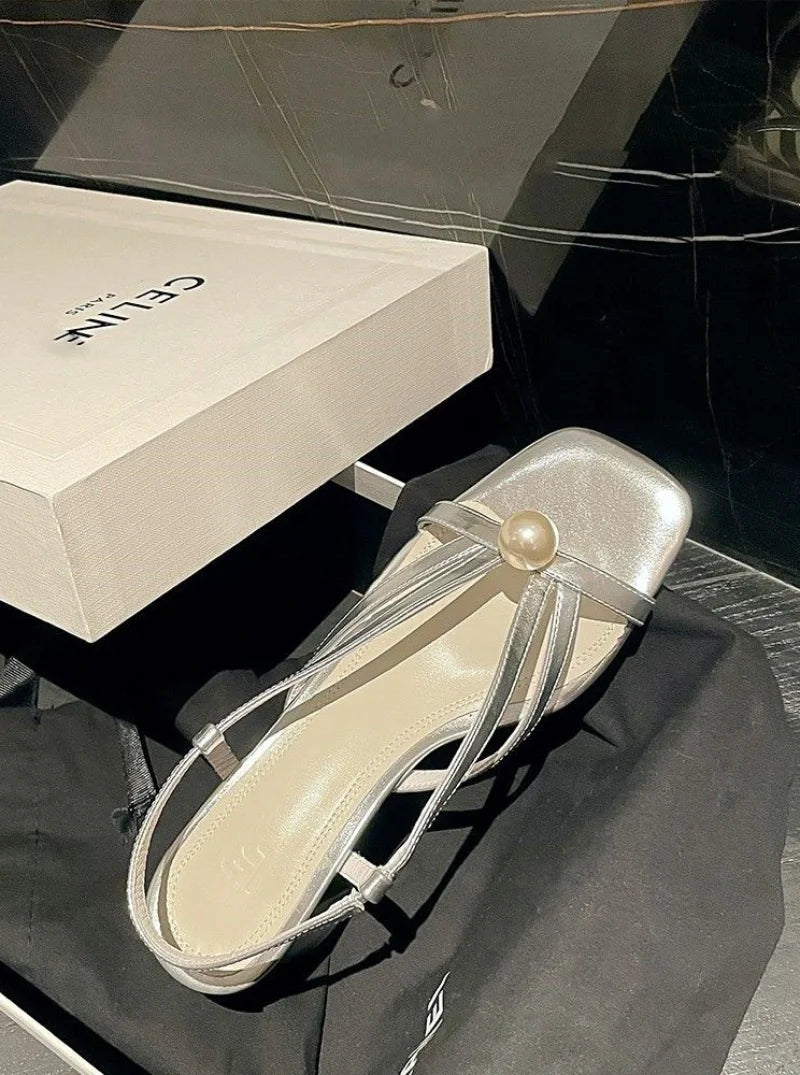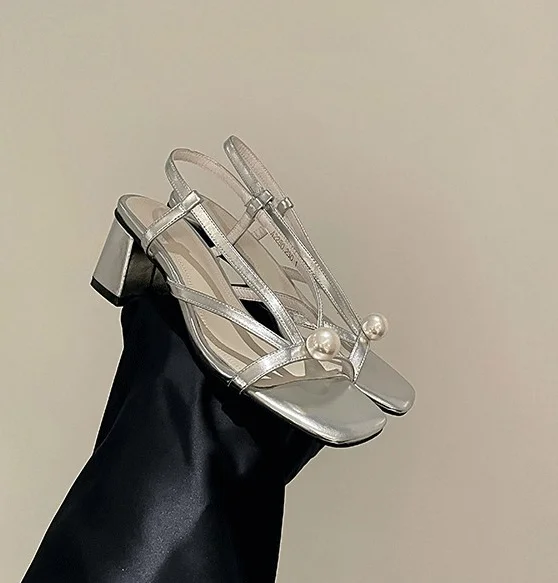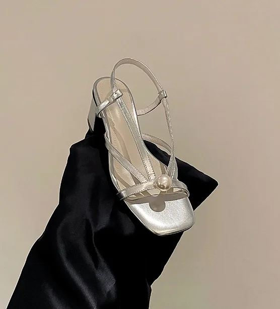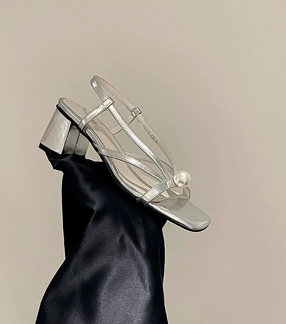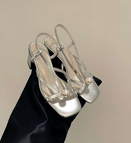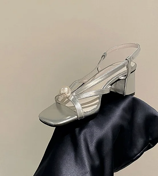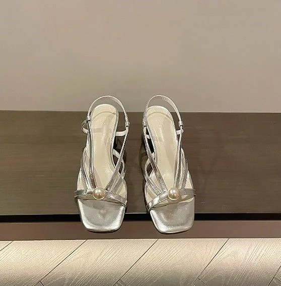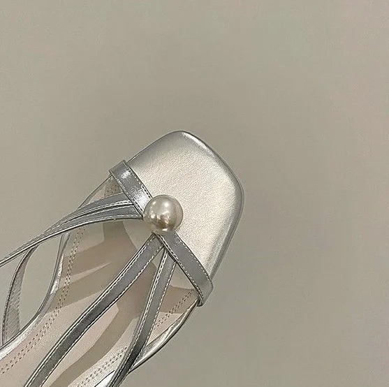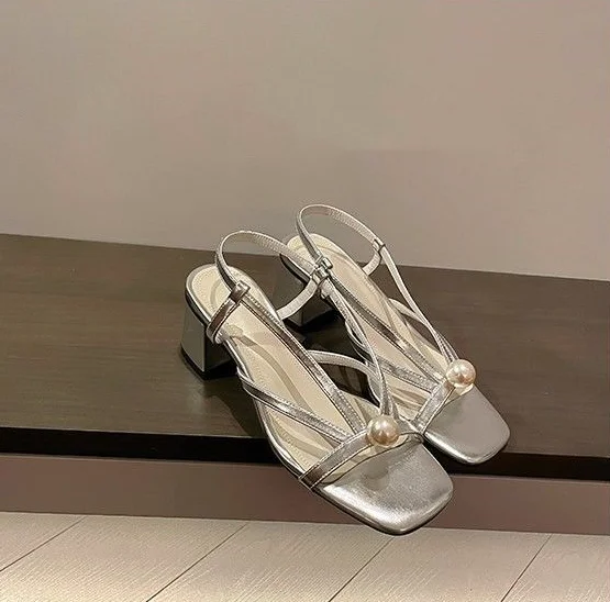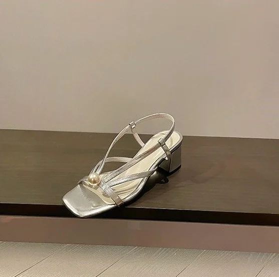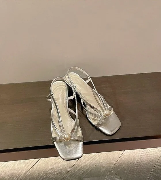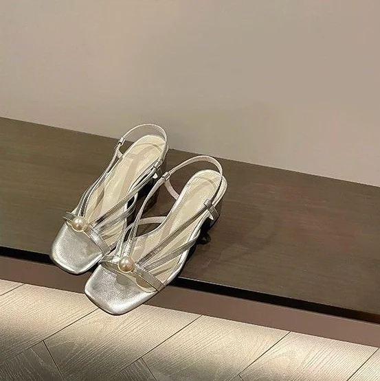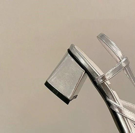 LIZAKOSHT - Sandals for Women Rhinestones Footwear Diamond Summer Heeled Ladies Shoes Silver Pumps High Heels Open Toe Square Shoe F H