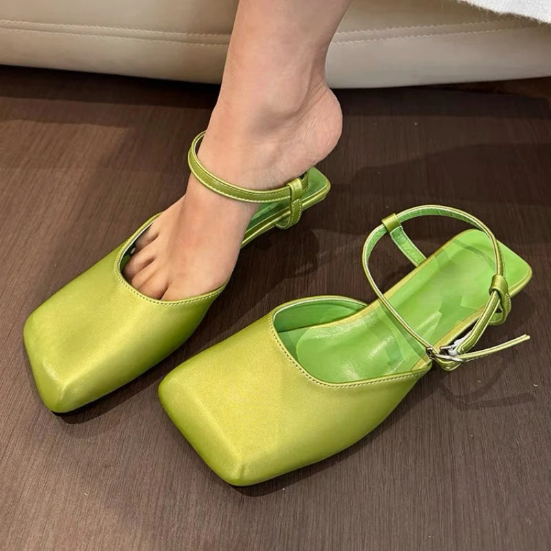 LIZAKOSHT - Satin Designer Sandals Women Square Toe Low Heel Slingback Sandals Ladies Shallow Classy Fashions Luxury Party Dress Shoes Women
