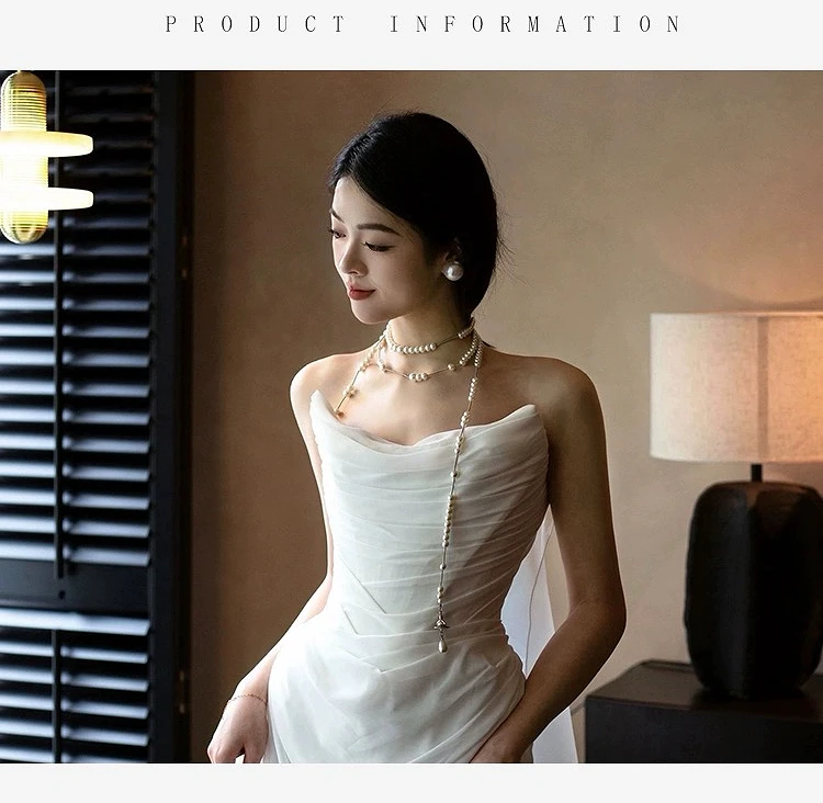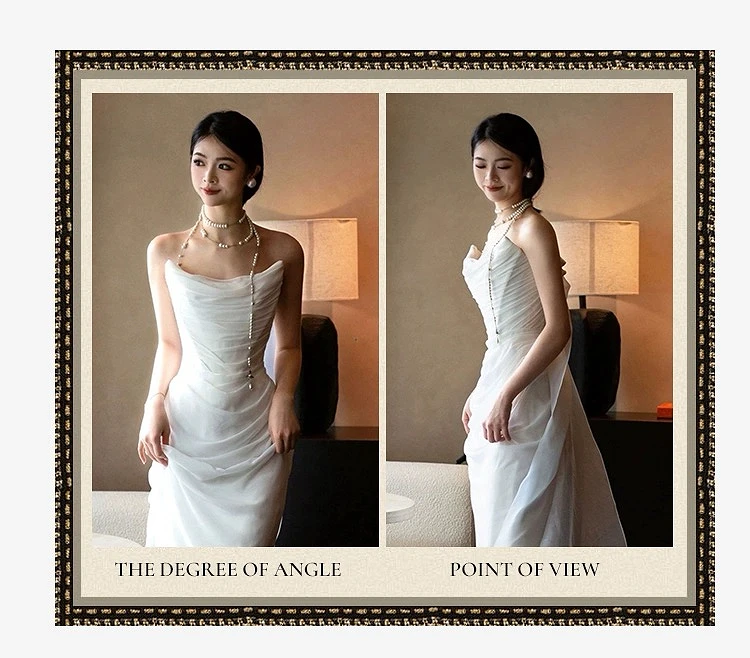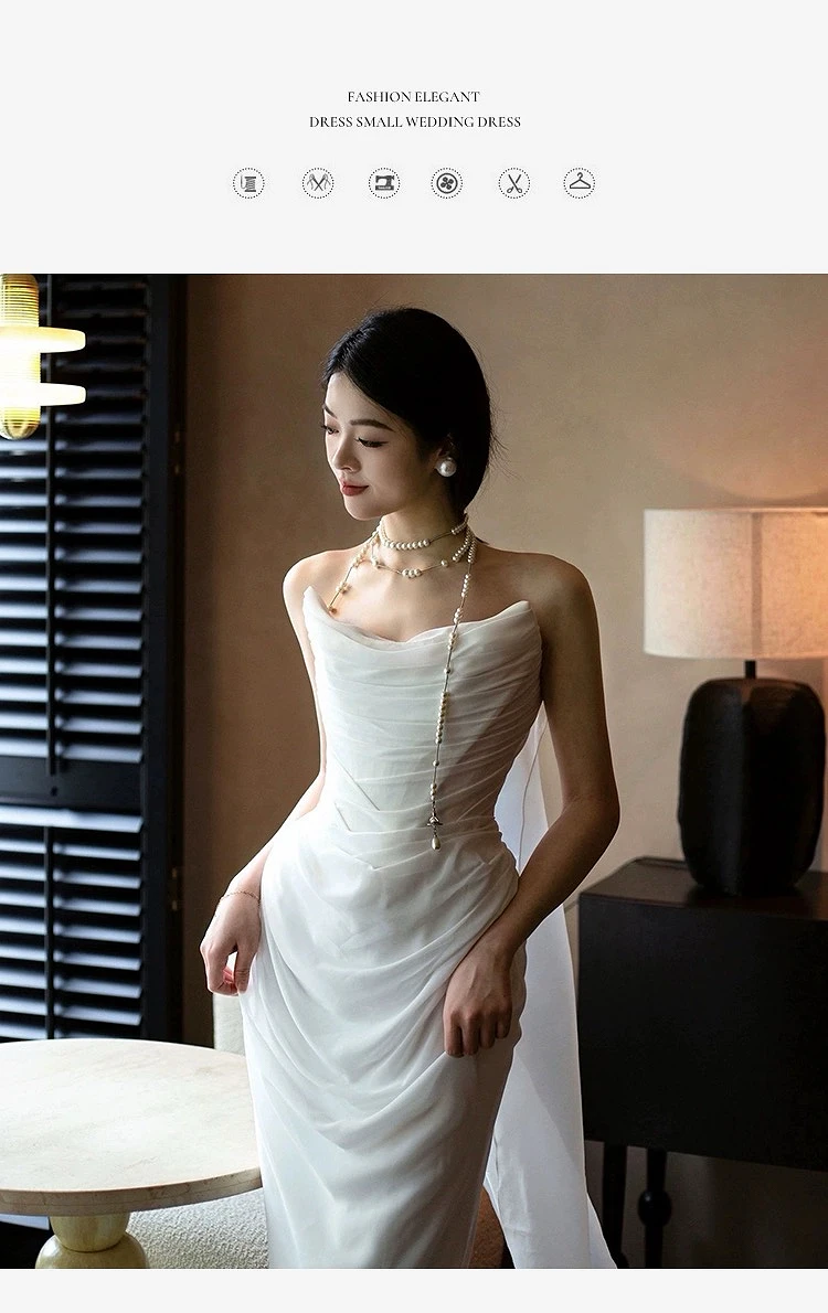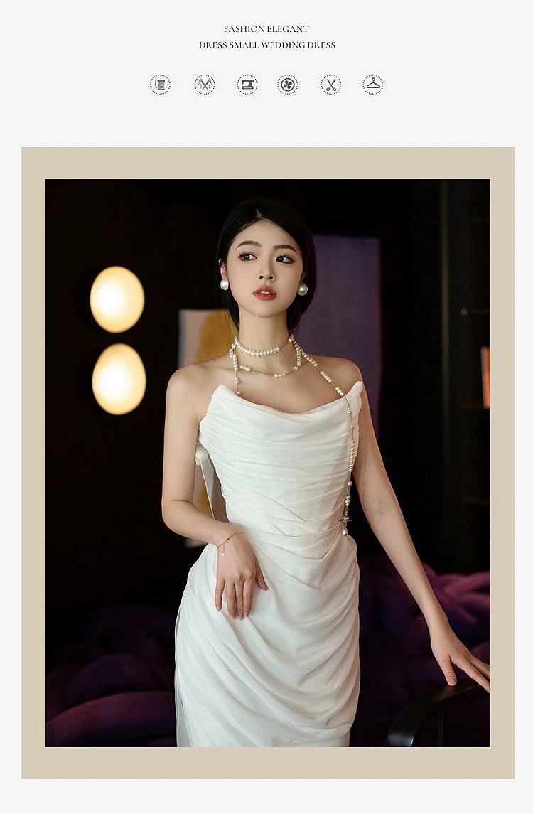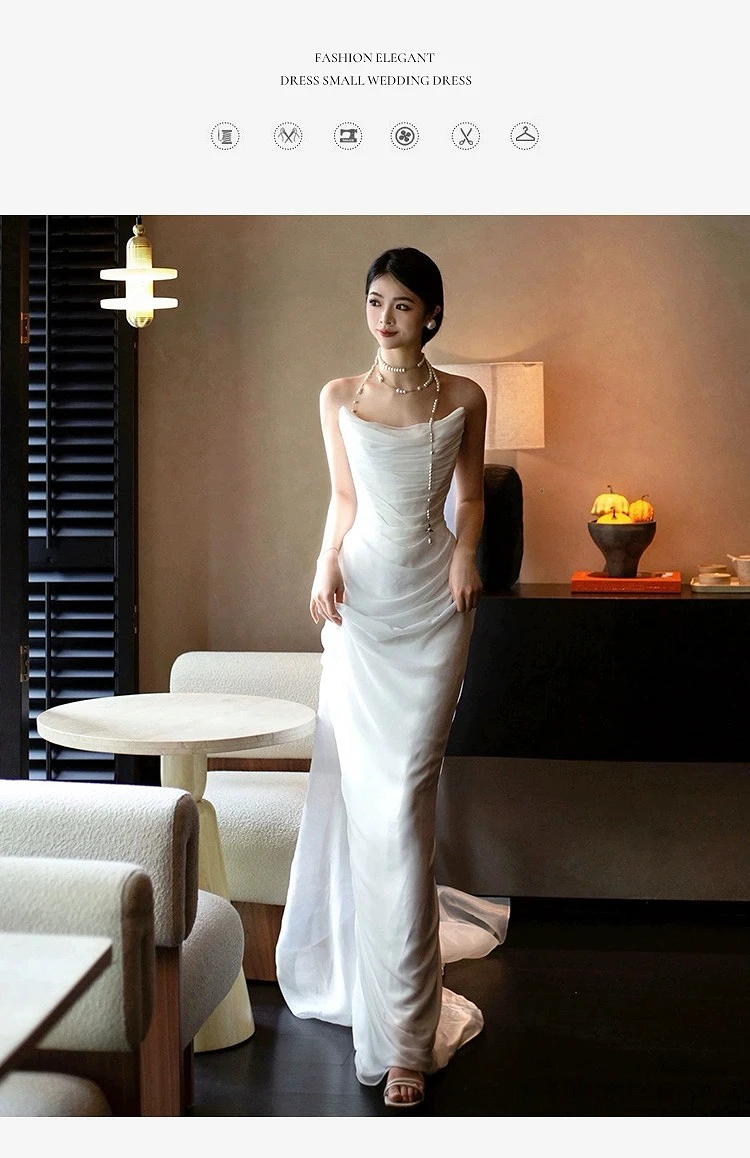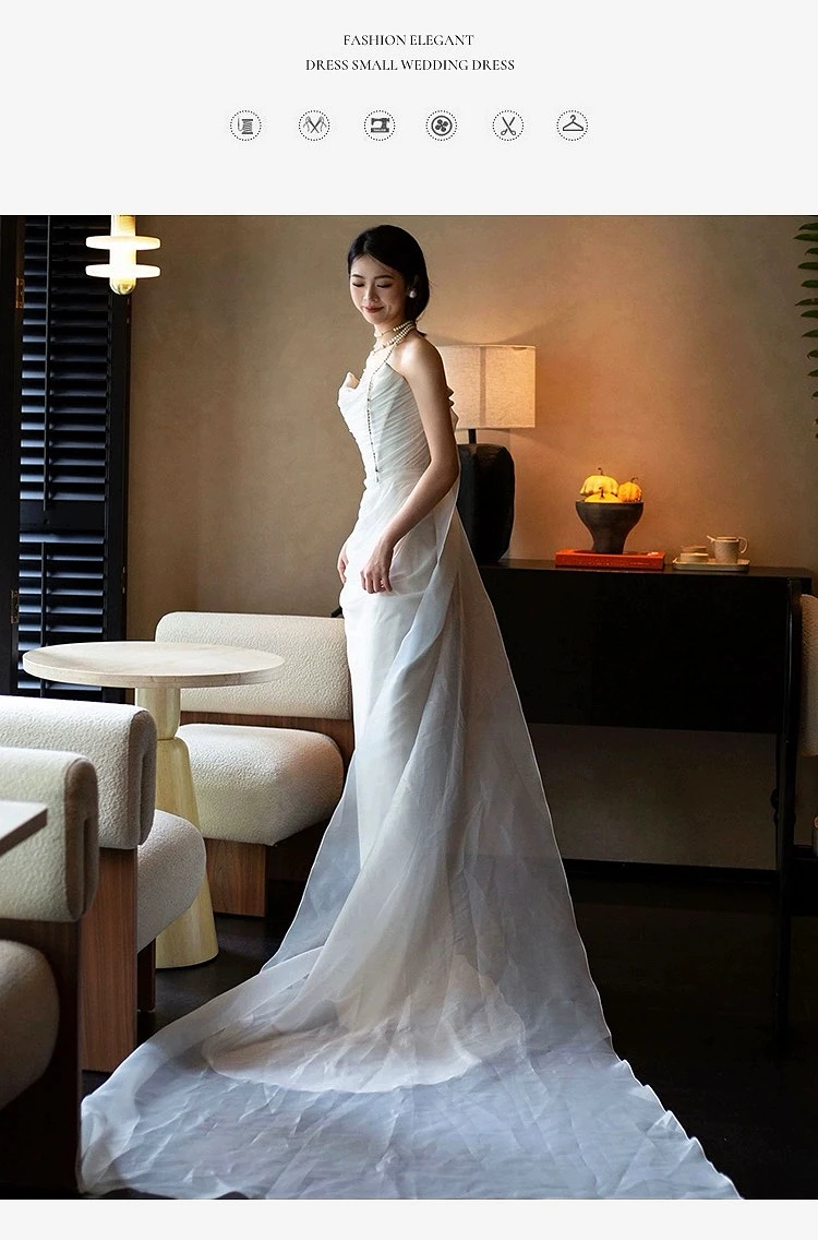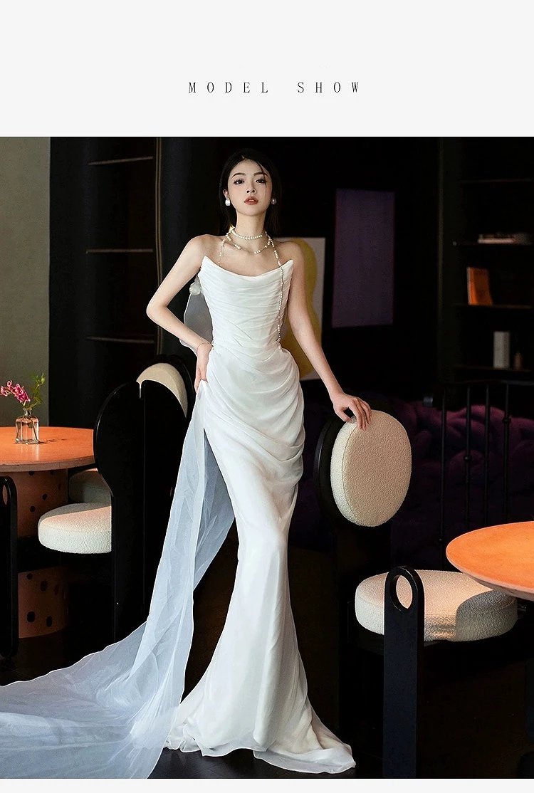 LIZAKOSHT - Satin Fishtail Wedding Dresses Simple Light Luxury Mermaid Niche Pleated Sleeveless Ivory Party Slim French Long Bride Gowns