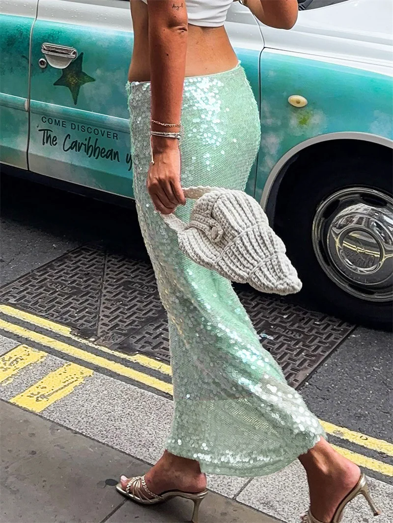 LIZAKOSHT - Sequin High Waist Slim Autumn Skirt For Women Elegant Slim Fashion Patchwork Zipper Skirt Streetwear Sexy Female Skirt