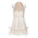 LIZAKOSHT - Sexy Deep V-neck Backless Champagne Party Club Dresses Women Halter Bandage Sleeveless Tunics Buttons Short Evening Dress