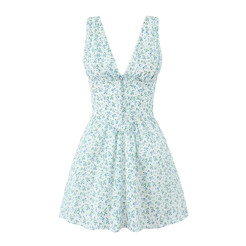 LIZAKOSHT - Sexy Elegant Women Sleeveless V Neck Floral Print Tank Summer Dresses Short Robe Cotton