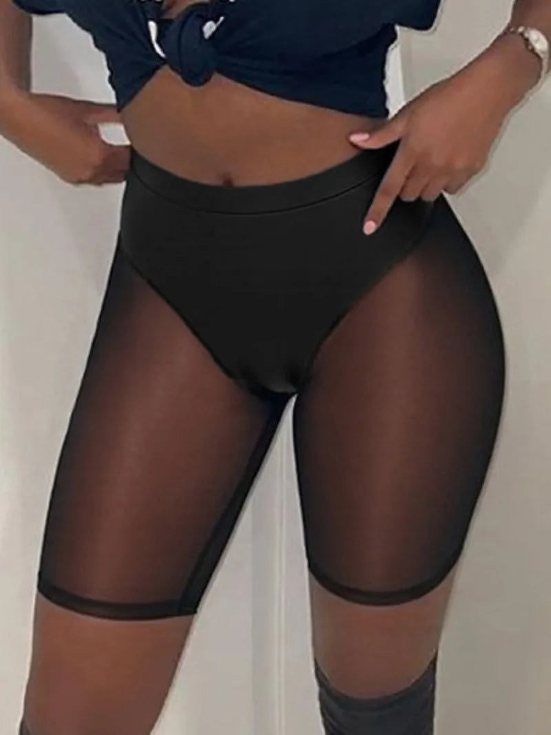 LIZAKOSHT  -  Sexy Mesh Patchwork Shorts Women 2025 Summer High Waist See-through Fitness Sports Yoga Short Leggings Skinny Night Club Shorts
