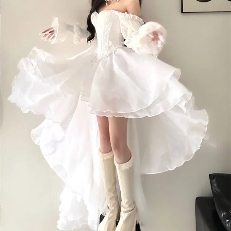 LIZAKOSHT - Sexy Off Shoulder Strapless Long Sleeve Dresses 2025 Long Sleeve Loose Dress for Women Y2k Slim Waist White Vestidos De Mujer