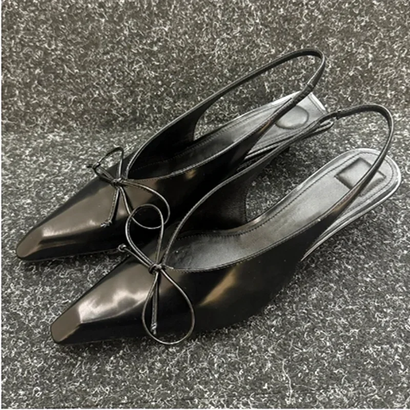 LIZAKOSHT - Sexy Pointed Toe Mules Pumps Women Summer Low Heel Slingback Sandals Female Fashions Retro Office Bow Designer Sandals Women