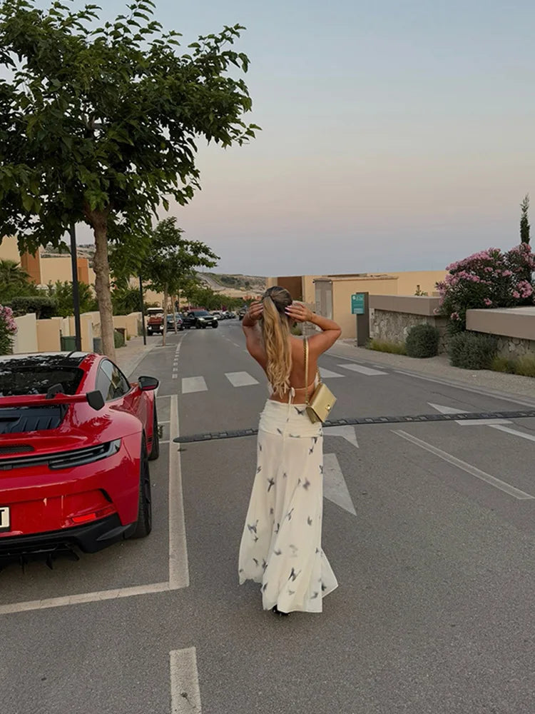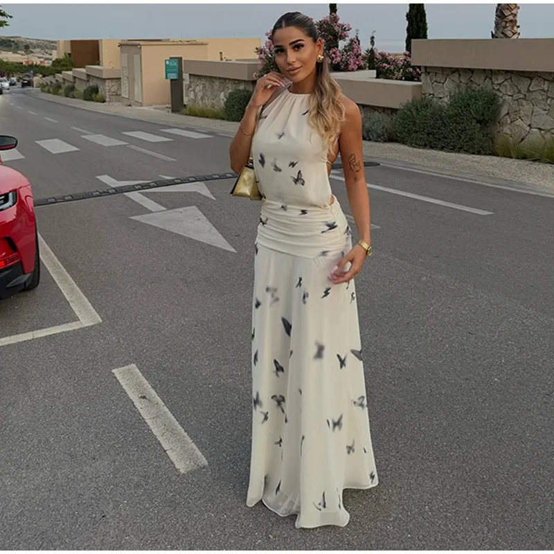 LIZAKOSHT  -  Sexy Printed Halter Long Dresses Women Fashion Sleeveless Backless High Waist Slim Maxi Dress 2025 Lady Summer Chic Casual Robes