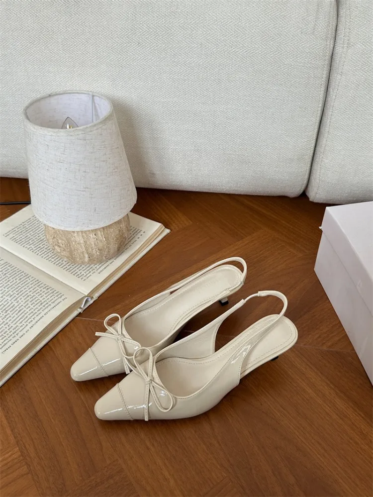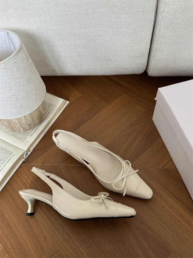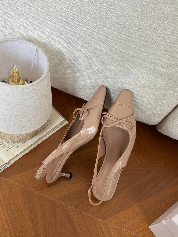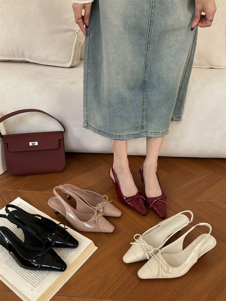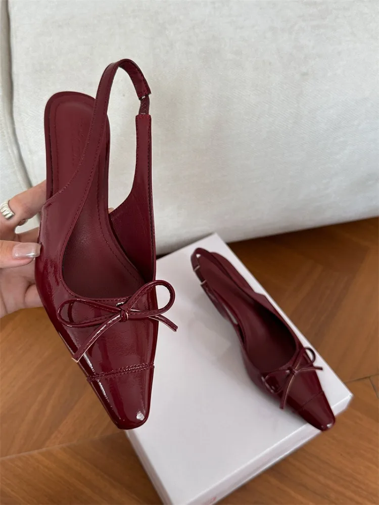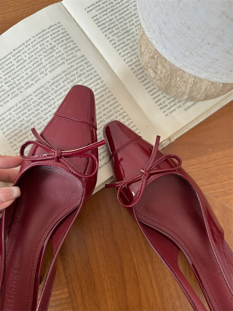 LIZAKOSHT  -  Sexy Red Sandals for Women Patent Leather Pointed Toe Slingbacks Shoes Shallow Comfort Fashion Low Heel Dress Bow Pumps Women