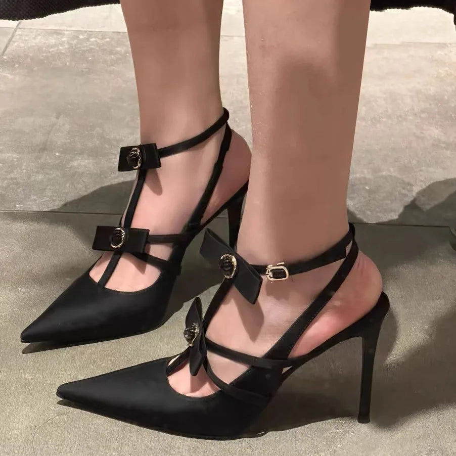 LIZAKOSHT - Sexy Satin Pointed Toe High Heels Women Stripper Party Bridal Shoes Pumps Stiletto Heel Woman Bow Luxury Designer Sandals Female