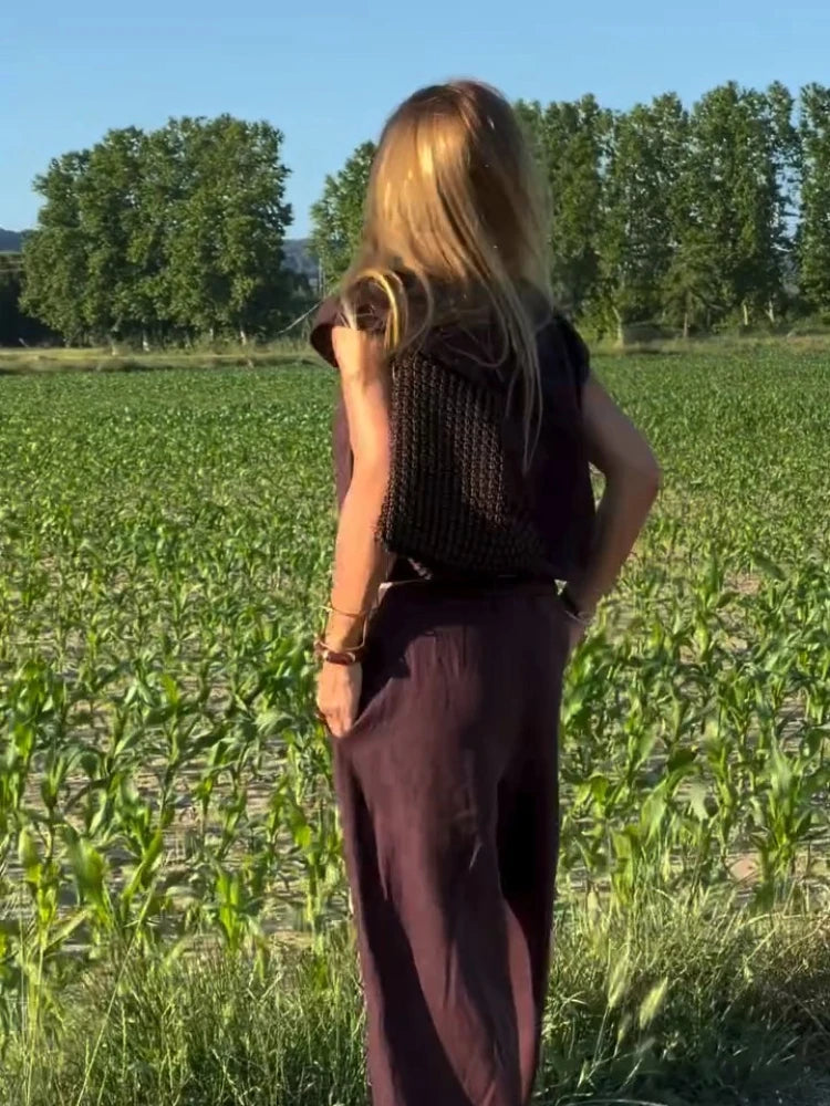 LIZAKOSHT - Sexy V-neck Top Pants 2 Piece Sets Women Casual Short Sleeve Top High Waist Straight Pant Sets 2025 Female Summer Chic Outfit