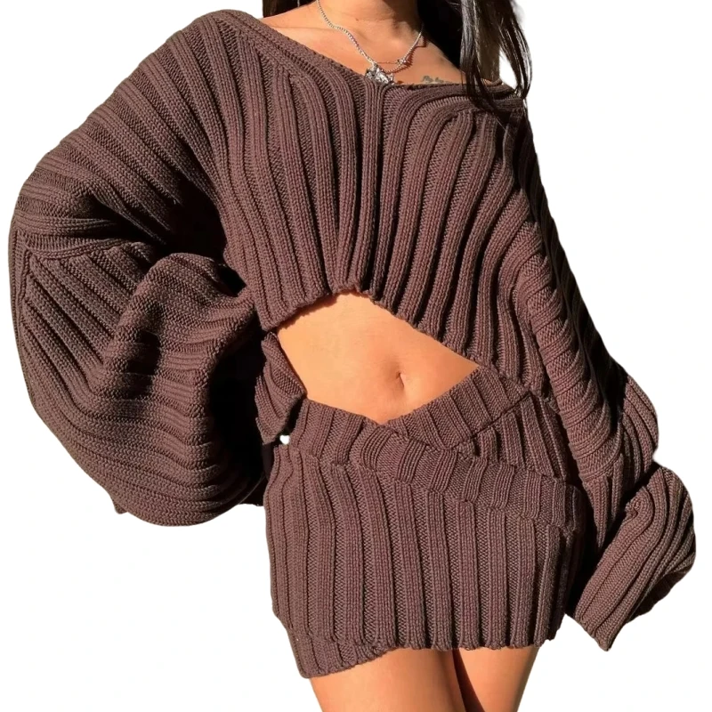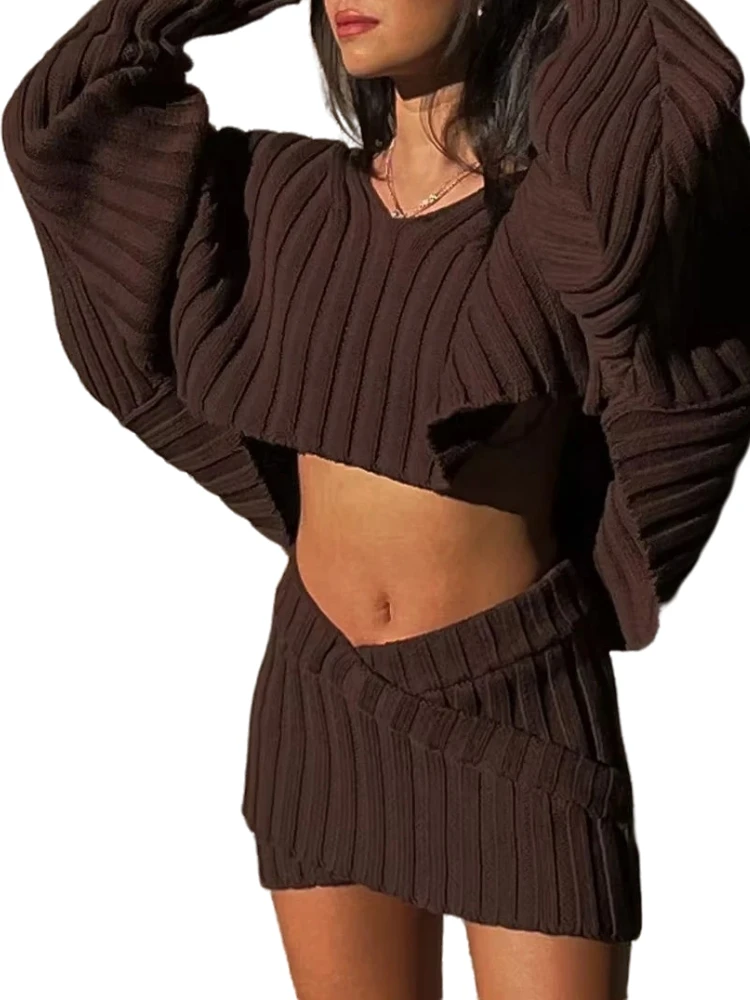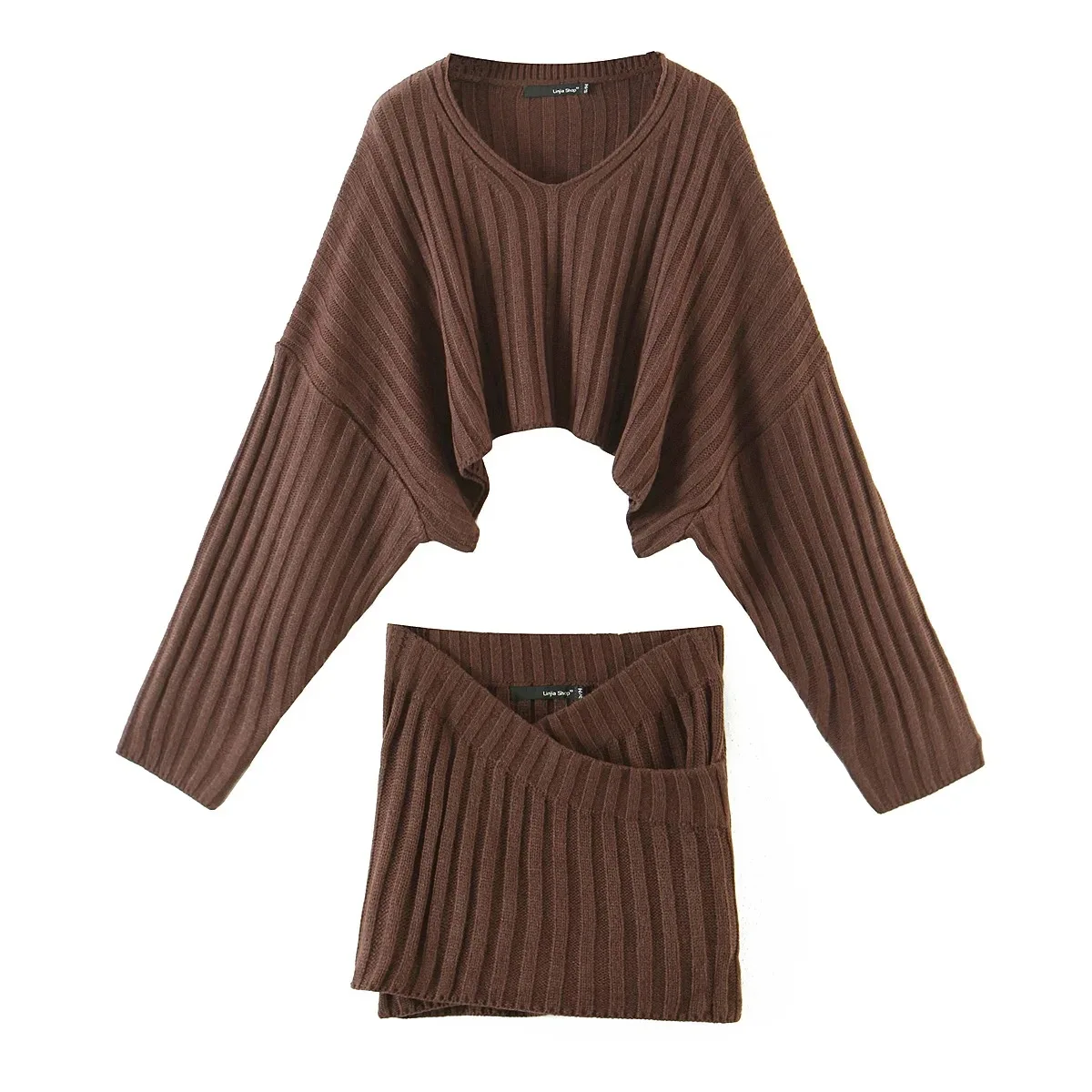 Lizakosht Sexy Women Set Autumn Winter England Style Gothic Batwing Sleeve Crop Sweater Top Pencil Skirt 2 Piece Set