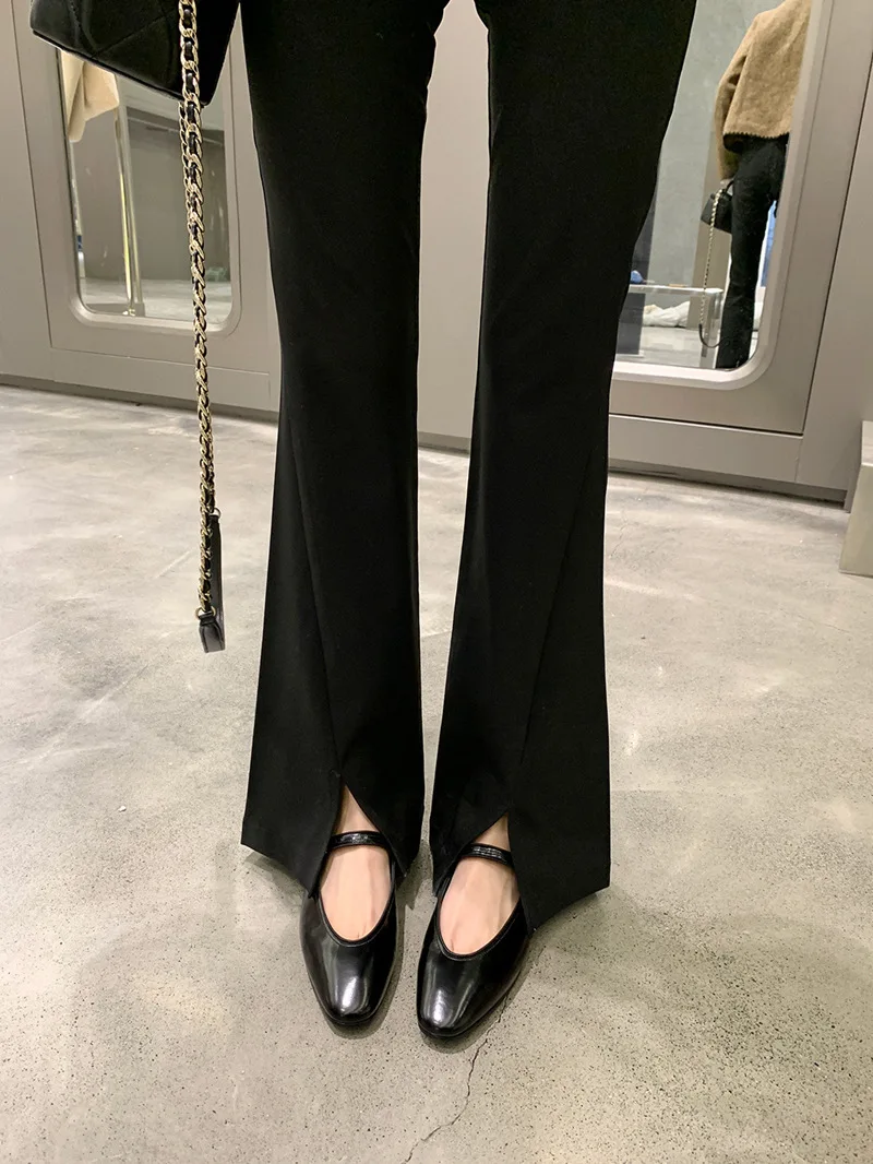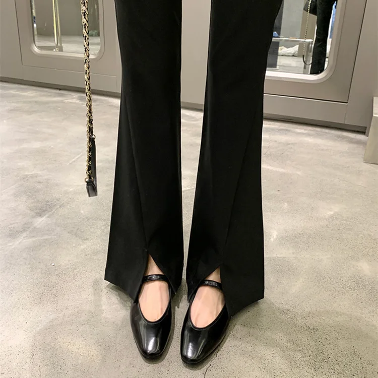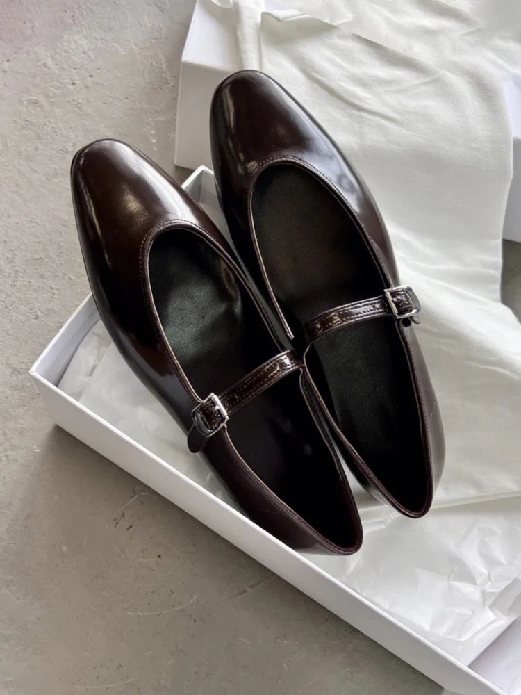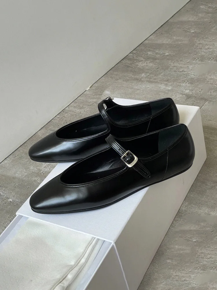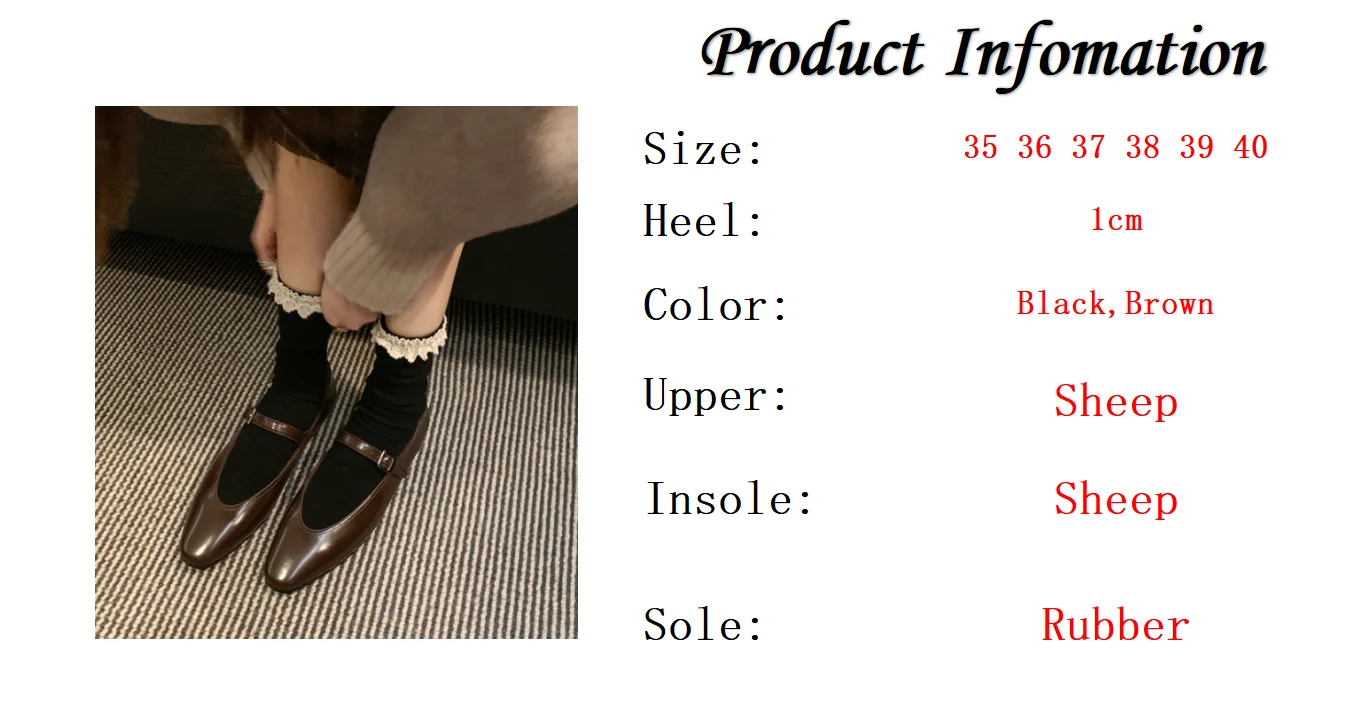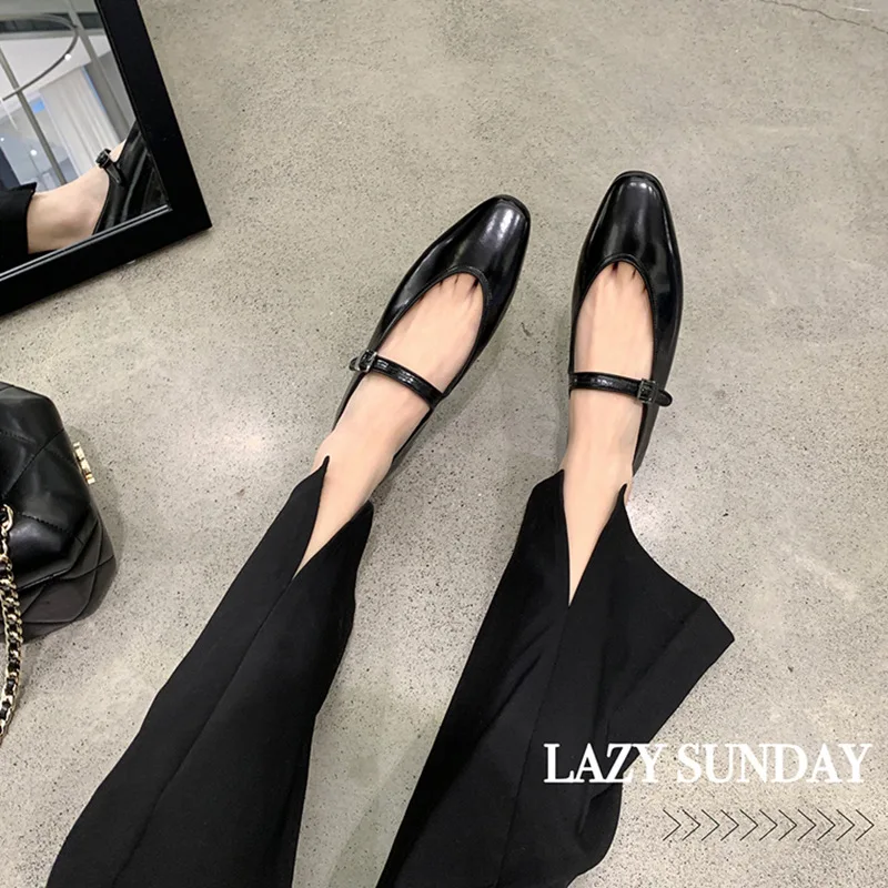 LIZAKOSHT - Shallow Mouth Mary Jane Shoes Women's Flat Shoes Ladies French Retro Single Shoes Buckle Leather Loafers Women