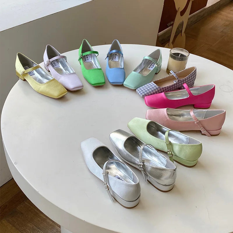 LIZAKOSHT - Shallow Mouth Shoes Woman Casual Female Sneakers Flats Square Toe Modis New Dress Summer Cute Mary Janes Solid Silk PU Basi