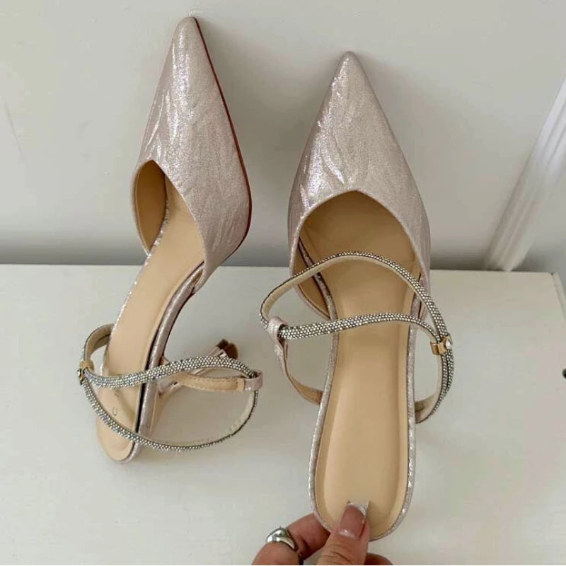LIZAKOSHT  -  Shiny Pointed Toe High Heels Women Luxury Party Dress Shoes Sexy Elegant Slingback Shoes Fashion Brand Sandals for Women Pumps